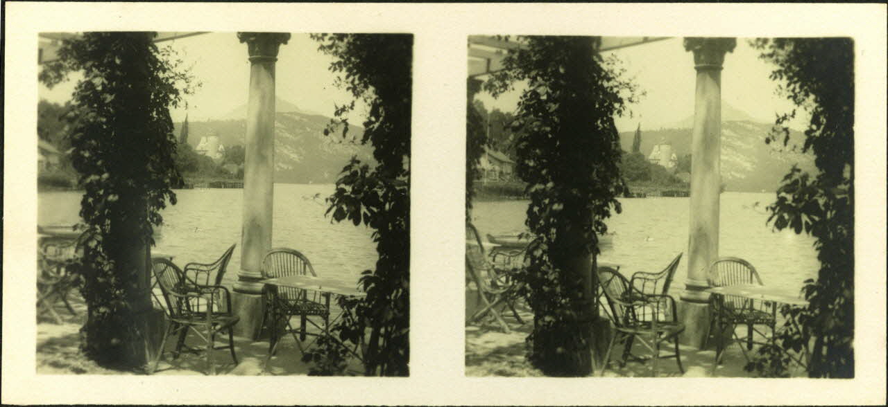 photographie, Fonds kostioukowsky, La Stéréo-vue. la Savoie - Le Dauphiné (Série III). Annecy et son lac. N°17. Duingt. Terrasse d'une pergola
