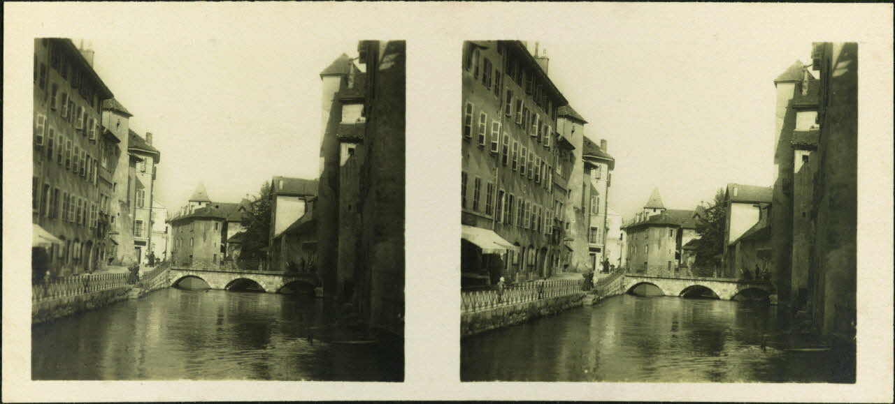 photographie, Fonds kostioukowsky, La Stéréo-vue. la Savoie - Le Dauphiné (Série III). Annecy et son lac. N°1. Annecy. Le canal de Thiou