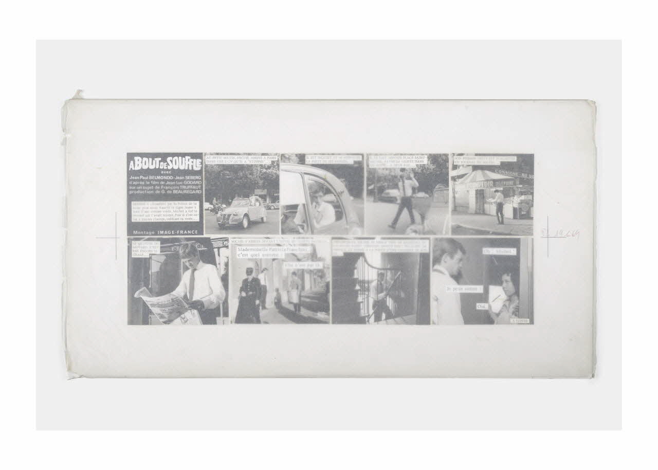 Lieu : Paris, Ile-de-France, FranceDate : 1959 - 1969Photographies réalisées lors du tournage du film "A bout de souffle" de Jean-Luc Godard. Les maquettes ont été réalisées en vue de la publication en plusieurs épisodes du ciné-roman dans le Parisien Libéré en 1969.