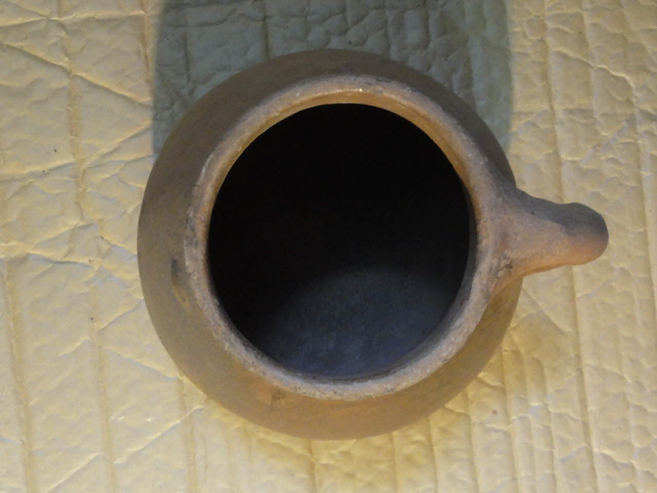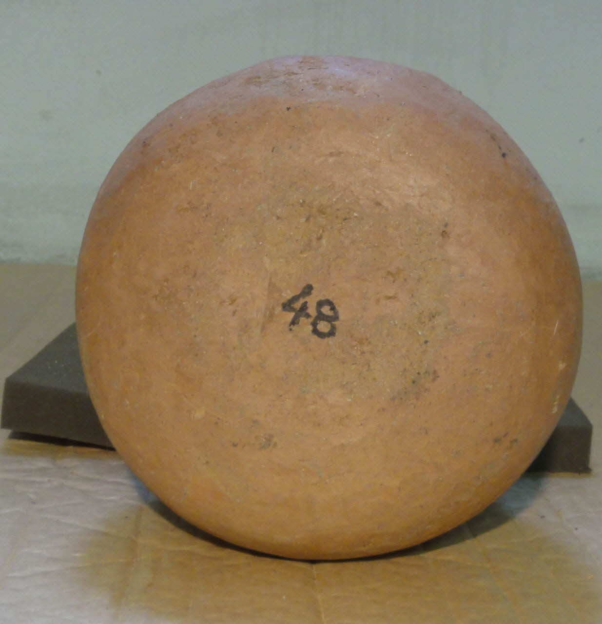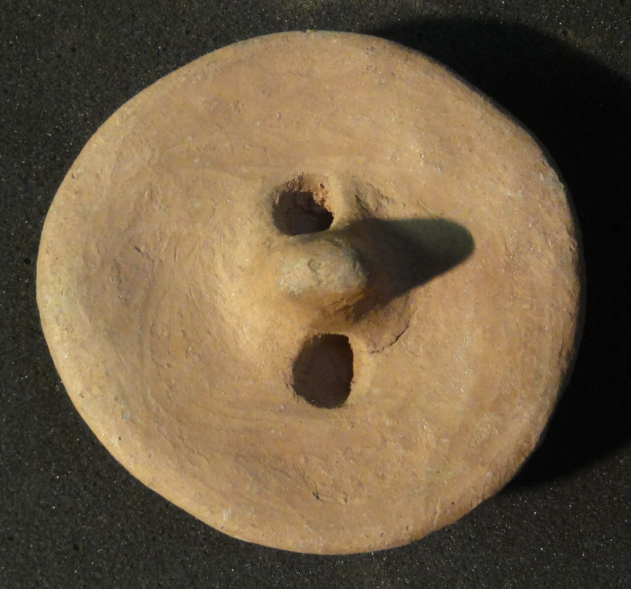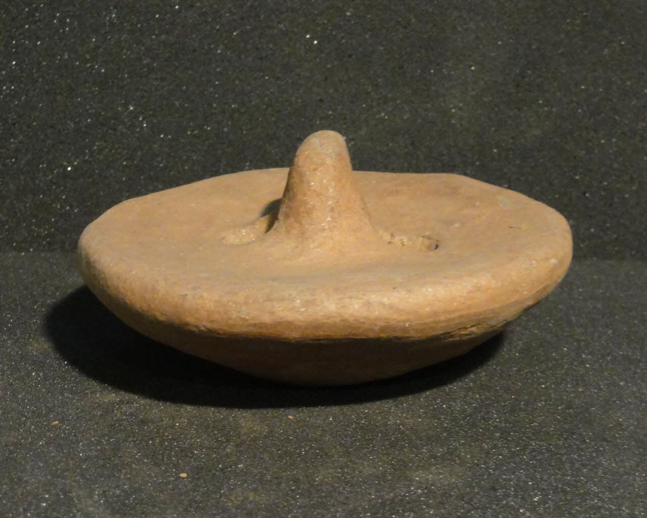 Lieu : Higâza, Qûs, Qena, EgypteDate : 1979La pâte est constituée pour moitié de limon du Nil, pour moitié de talc. Après séchage, la pièce est légèrement imbibée d'oxyde de fer et de talc avec un chiffon, puis polie avec un galet. La protubérance sur la paroi est une marque de potier pour distinguer la production d'un atelier de celle des autres.