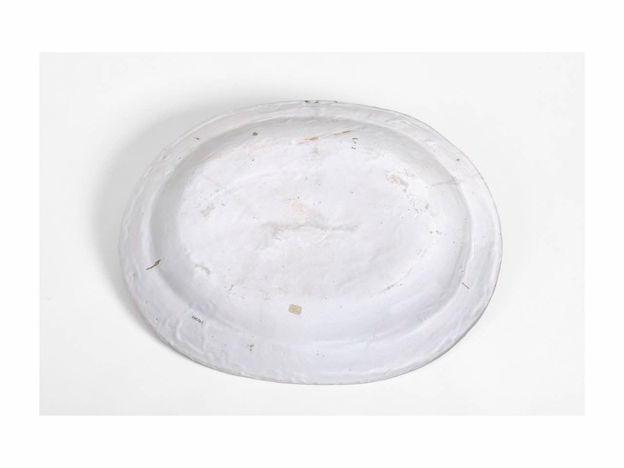 Lieu : France - Provence-Alpes-Côte d'Azur - Alpes-de-Haute-Provence - Moustiers-Sainte-MarieSuivant peut-être les recettes d’artistes italiens, les manufactures du sud de la France ont produit aux XVIIe et XVIIIe siècles des céramiques à la glaçure stannifère d’une grande qualité, blanche et onctueuse. La manufacture Clérissy, à laquelle est attribué ce plat, était réputée pour sa faïence grand feu en camaïeu bleu. Dans sa première période de production (1680-1725), elle s’était attaché les services d’une famille de peintres, les Viry, qui ont réalisé des décors historiés d’abord bibliques, historiques ou mythologiques, puis une série cynégétique inspirée des gravures d’Antonio Tempesta.
