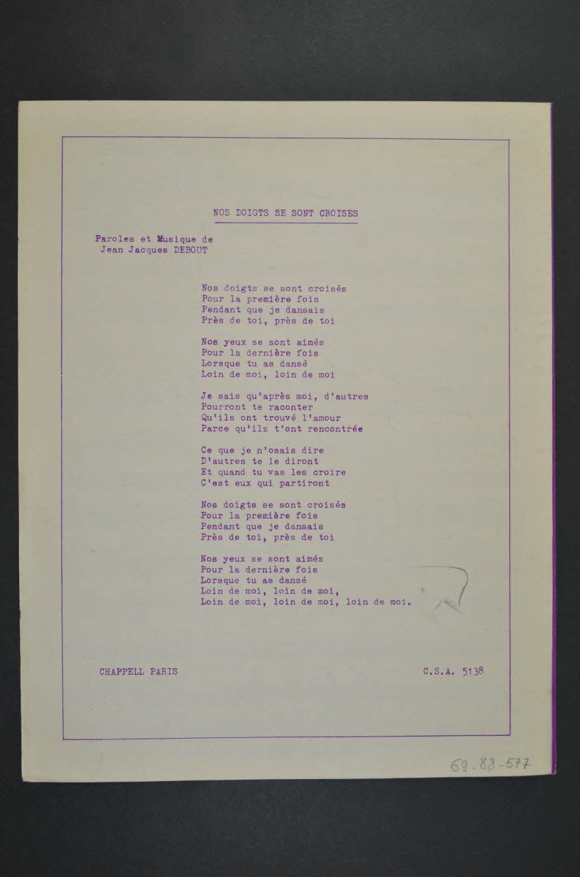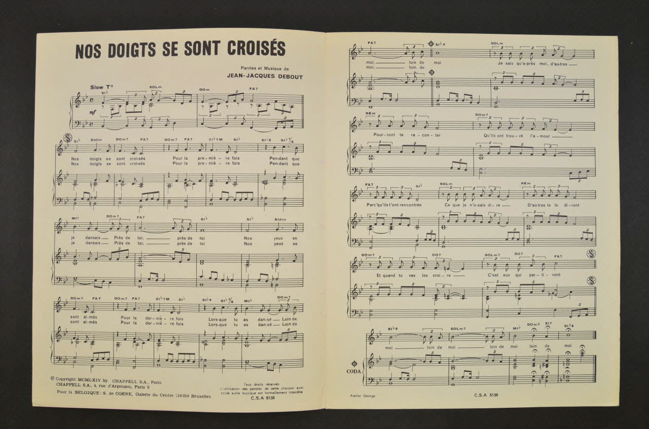 chanson, petit format, partition de musique, Nos doigts se sont croisés