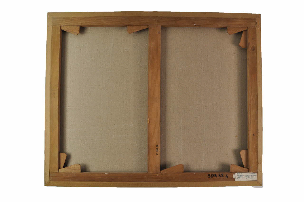 Huile sur toile de forme rectangulaire fixé par des semences en fer sur un châssis à clés chanfreiné en bois.