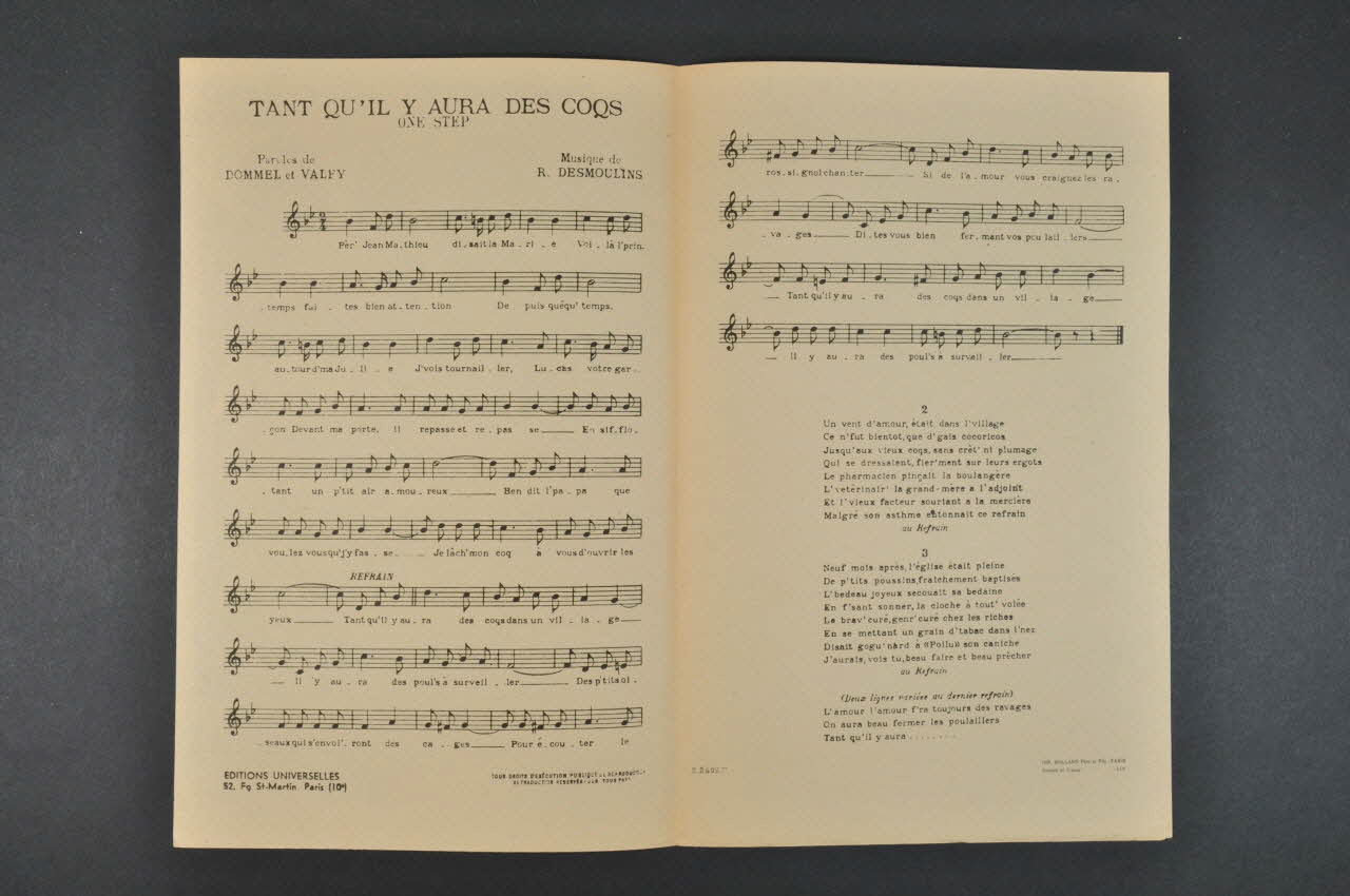 partition de musique, chanson, petit format, Tant qu'il y aura des coqs