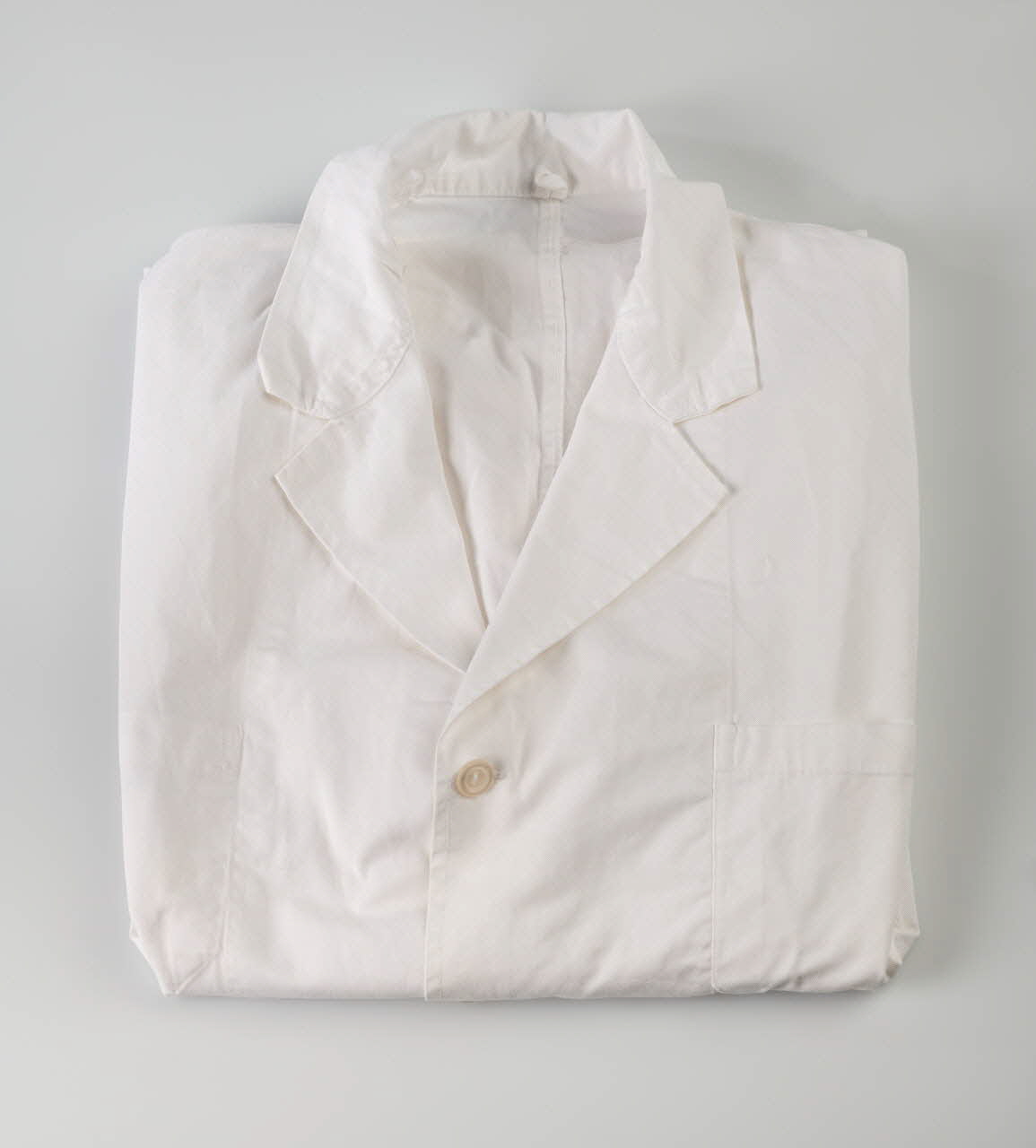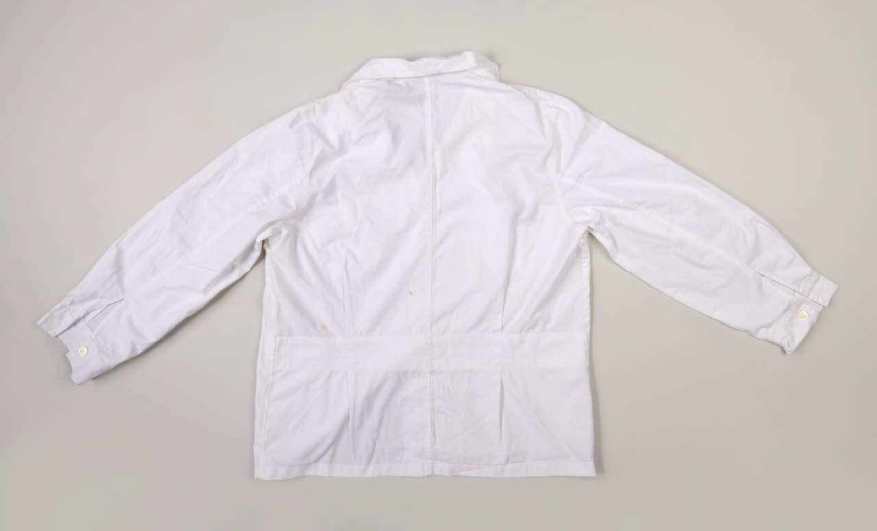 Lieu : Syros, Cyclades, Iles Egéennes, GrèceDate : 3e quart 20e siècleChemise en coton utilisée spécifiquement pour la vente des loukoums sur les bateaux de croisière. La couleur blanche du vêtement rappelle le sucre glace des loukoums. Cette chemise était portée par le frère de la donatrice.