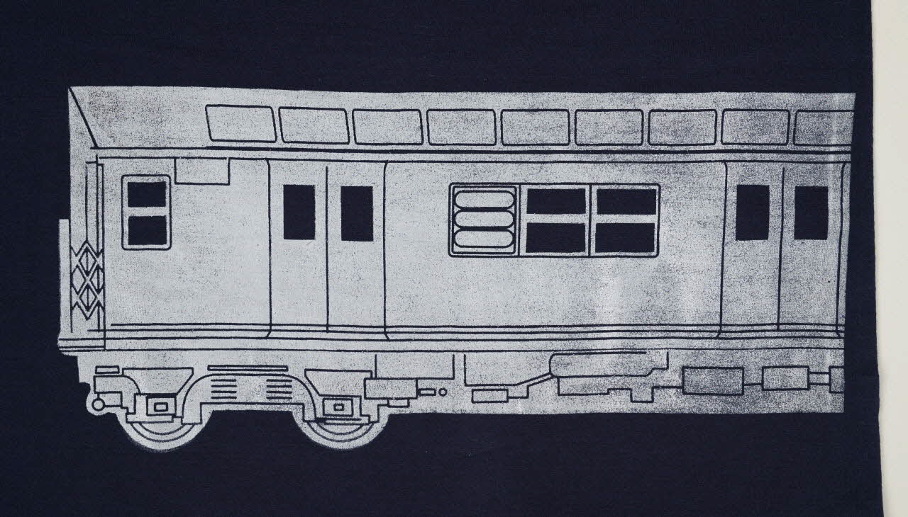 Lieu : Asnières-sur-Seine, Hauts-de-Seine, Ile-de-France, FranceDate : 2013Le processus créatif de ce tee-shirt inclut l'idée de participation et d'interaction avec le public, en effet Sidney a conçu le transfert au motif de métro/train comme un élément à customiser soi-même. Les fichiers de ces transferts sont créés par Sidney sur Illustrator, mais ils n’ont apparemment pas été conservés par l’artiste.