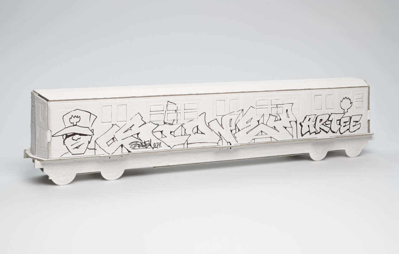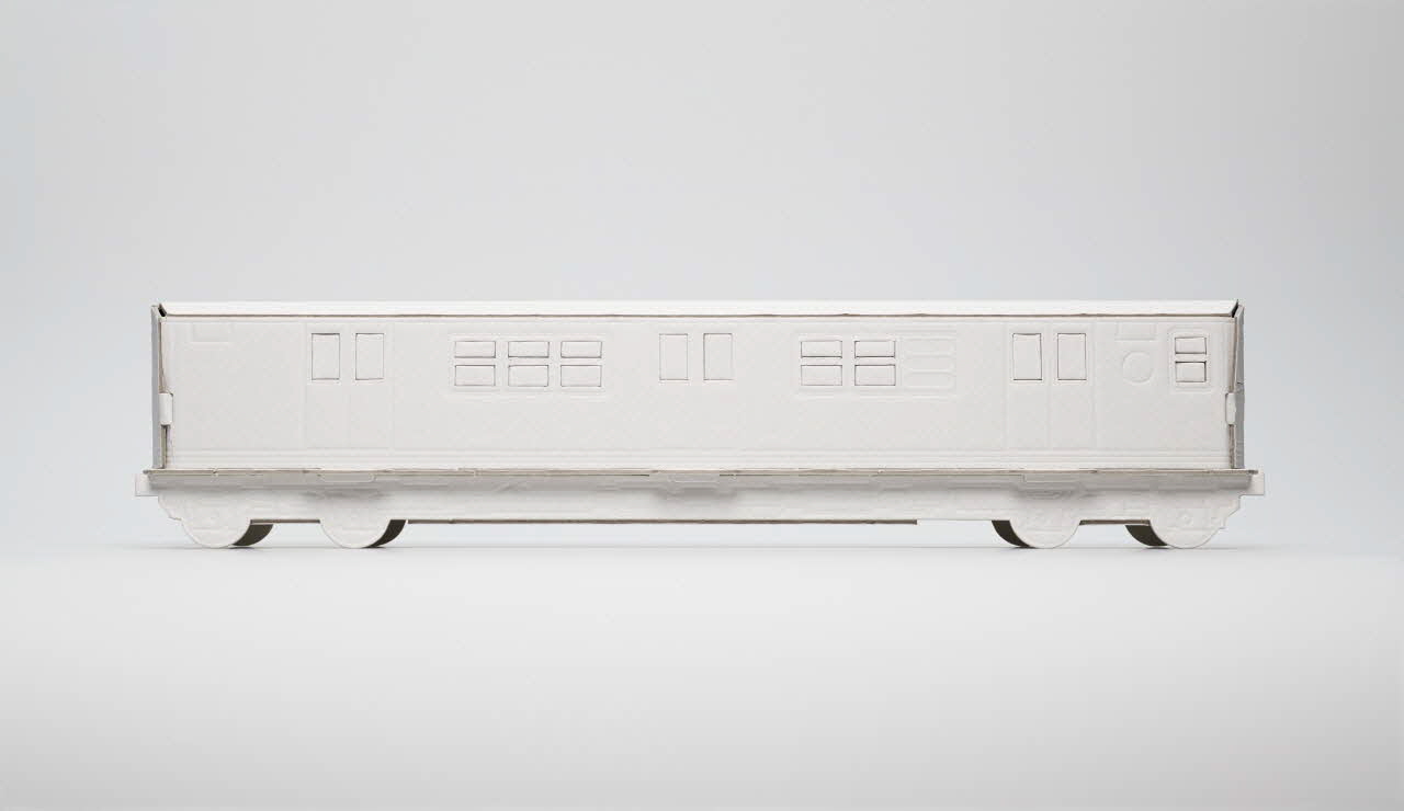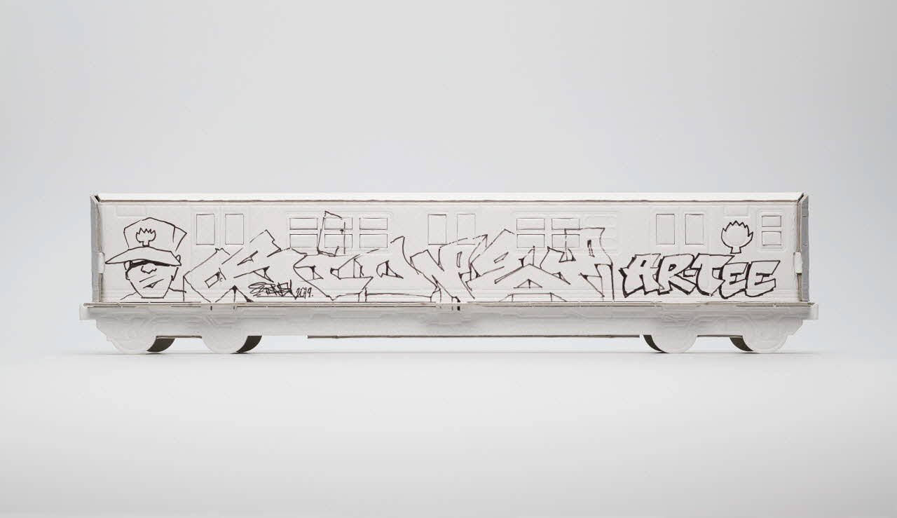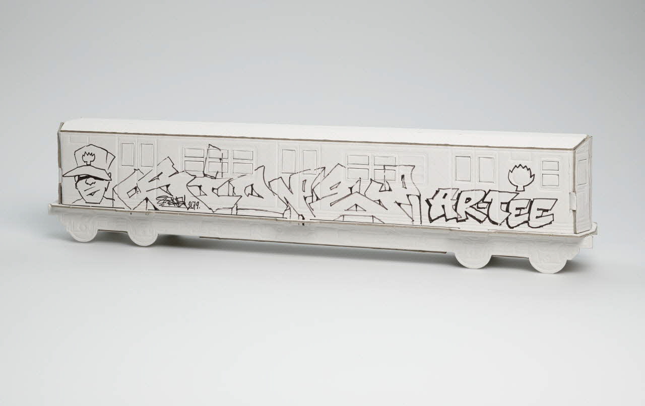 Maquette de métro en carton blanc montée et dédicacée par Sidney.Inscriptions