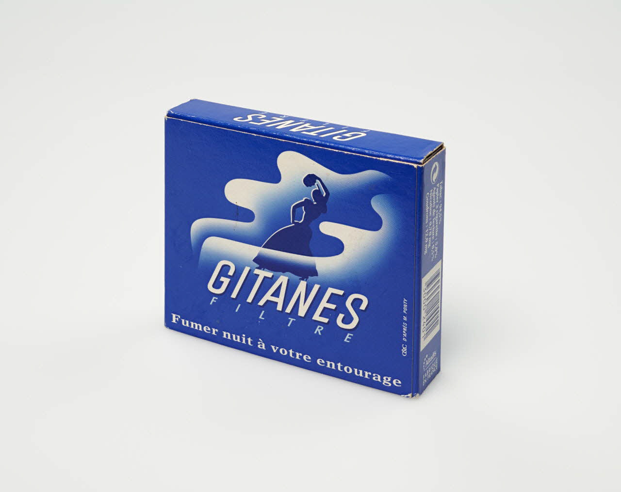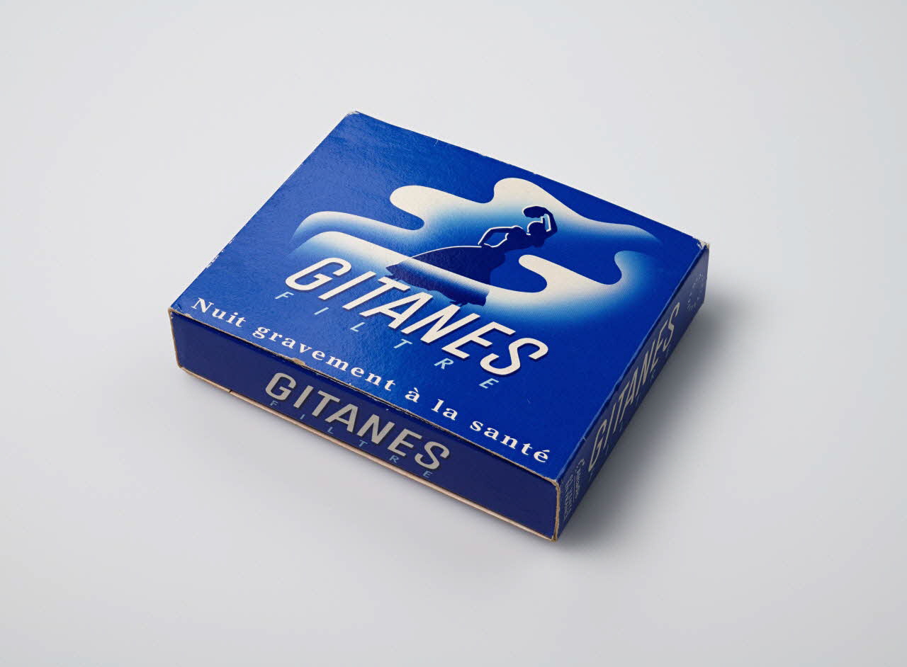 Lieu : FranceDate : 1976 - 2000Les premières Gitanes filtre sont apparues en 1956. La loi du 09 juillet 1976, dite « loi Veil » a obligé l'inscription d'un message sanitaire sur les paquets de cigarettes.