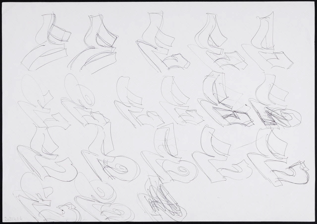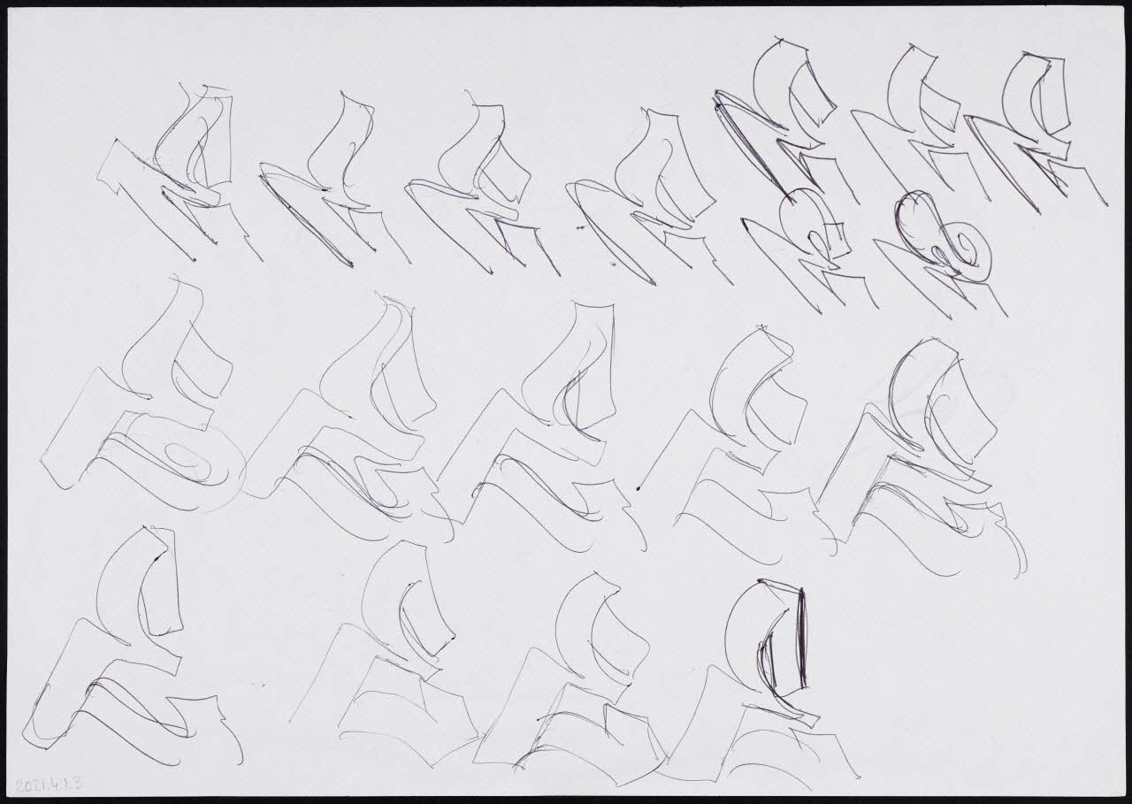 Lieu : Milan, Lombardie, ItalieDate : 2005Recherche stylistique sur la base de la lettre E pour créer un répertoire de formes. Plusieurs variations peuvent suivre (ajout de flèches…). Neuro a fait le même exercice avec toutes les lettres de l'alphabet.