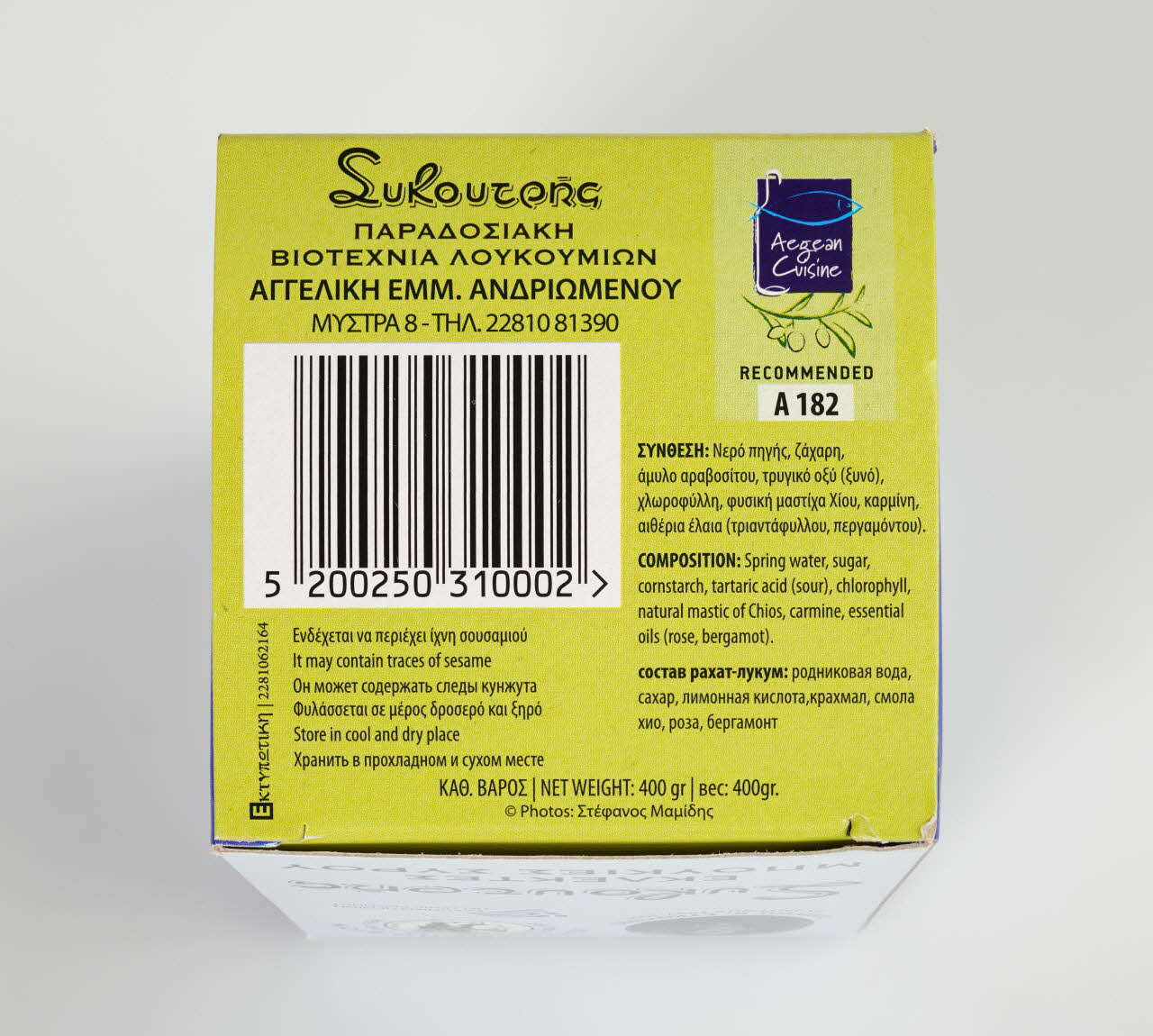 Lieu : Syros, Cyclades, Iles Egéennes, GrèceDate : 4e quart 20e siècleUtilisateur : Dina SykoutriBoîte utilisée par le fabricant pour la vente des loukoums (neuve).