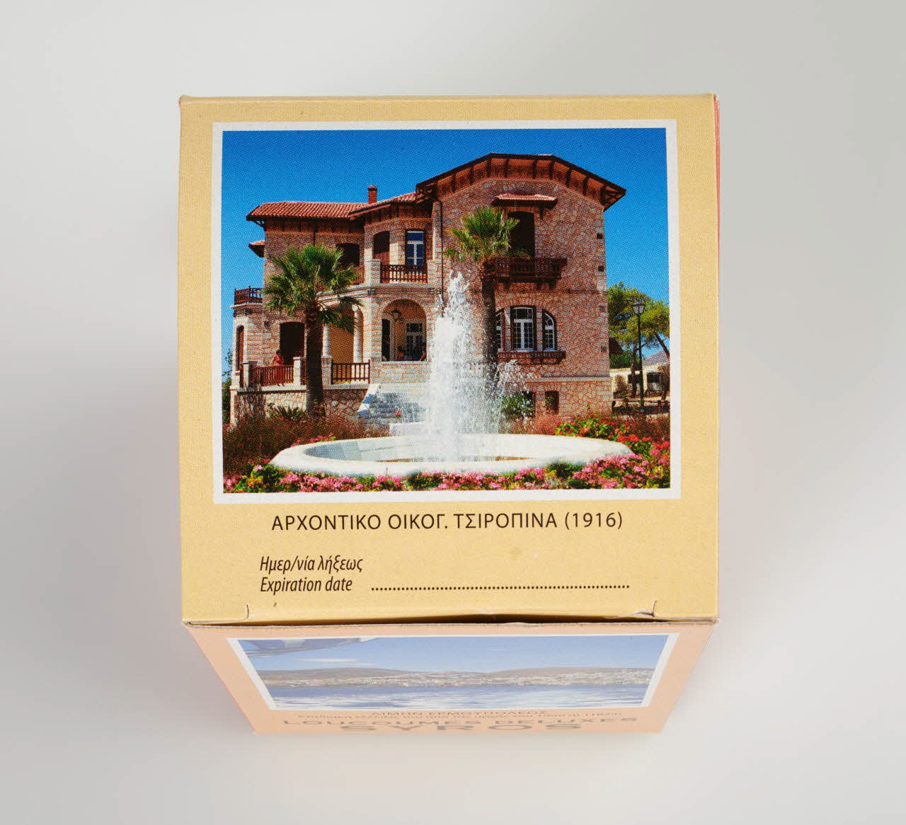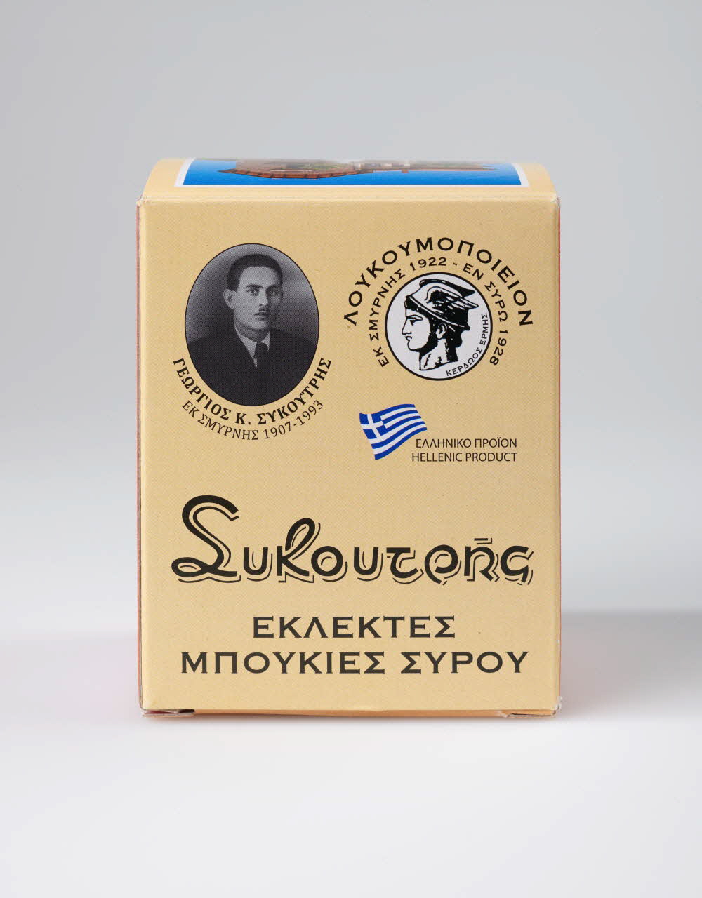 Lieu : Syros, Cyclades, Iles Egéennes, GrèceDate : 4e quart 20e siècleUtilisateur : Dina SykoutriBoîte utilisée par le fabricant pour la vente des loukoums (neuve).