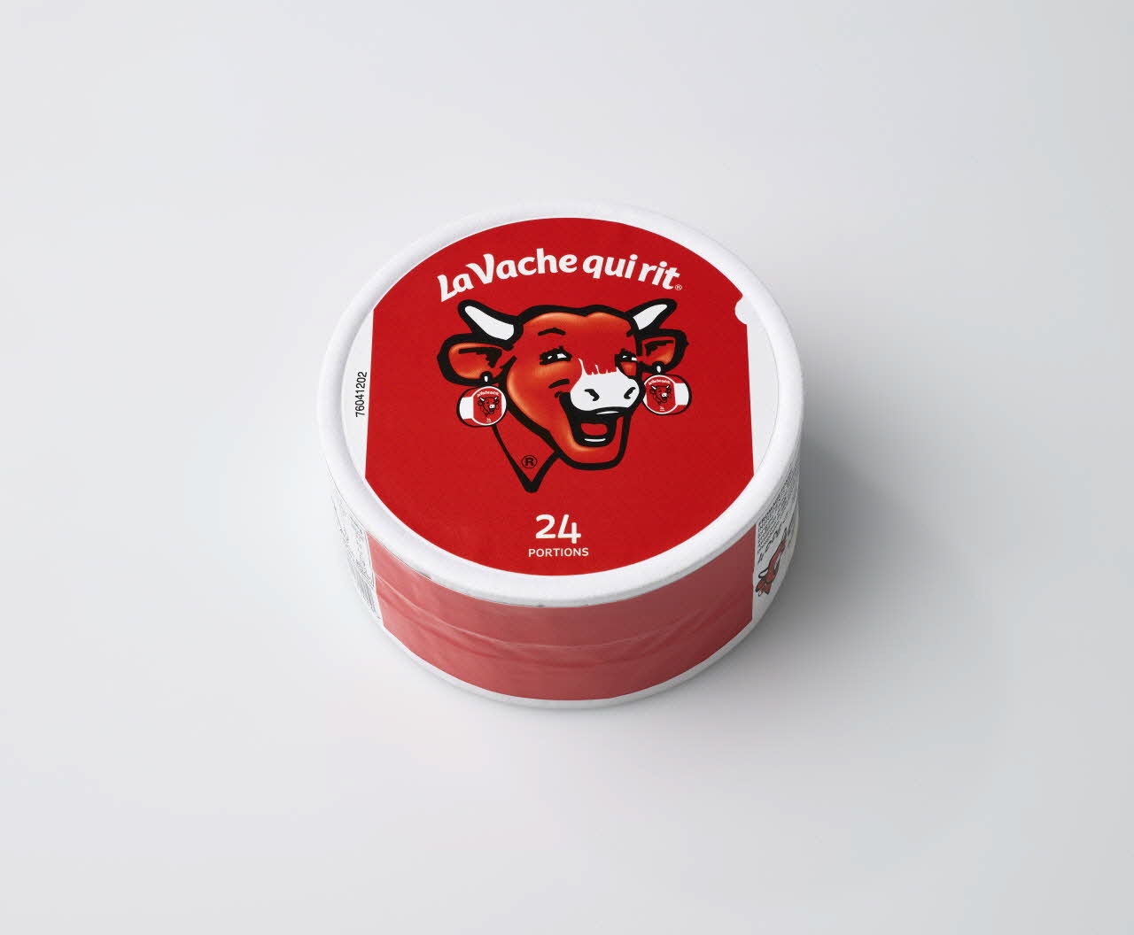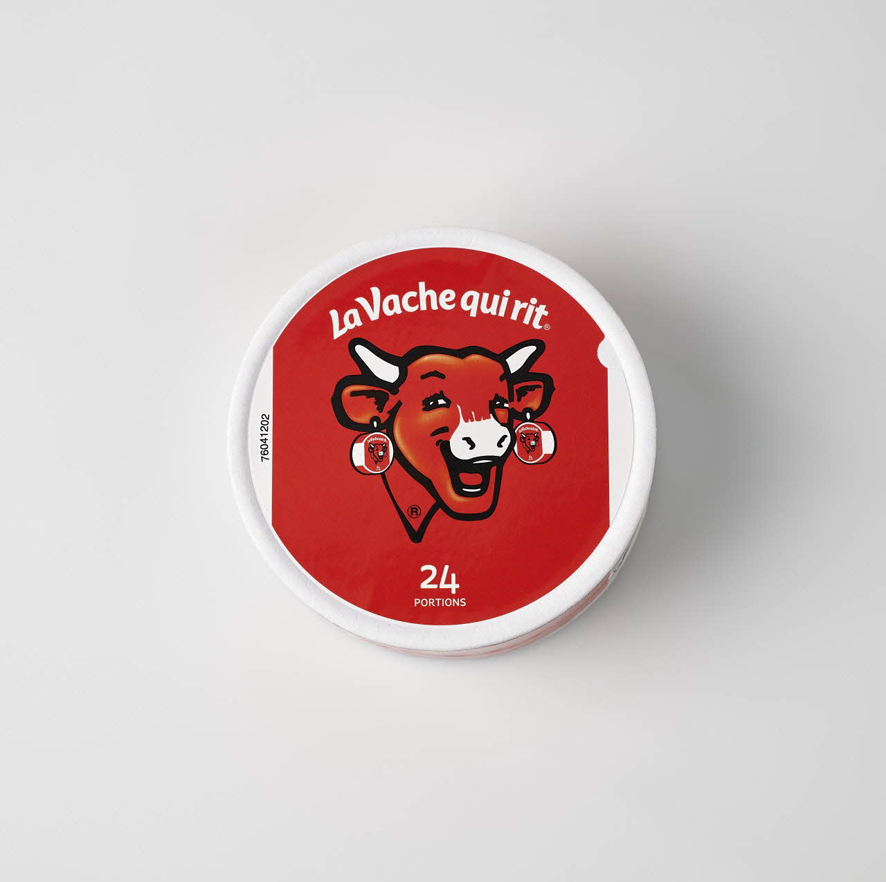 La Vache qui rit / 24 portions, dessuscomposition du fromage, poids, code barre, logo La Vache qui rit, côtéDécor