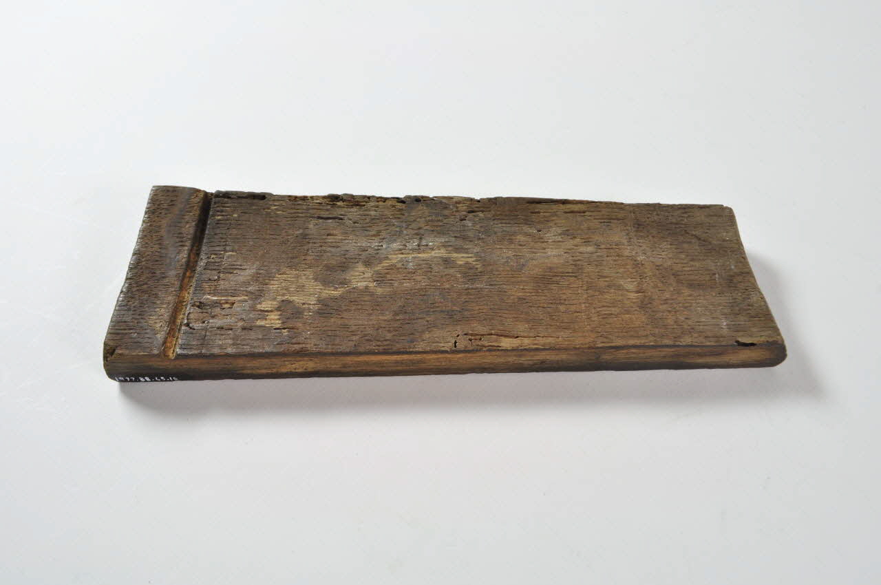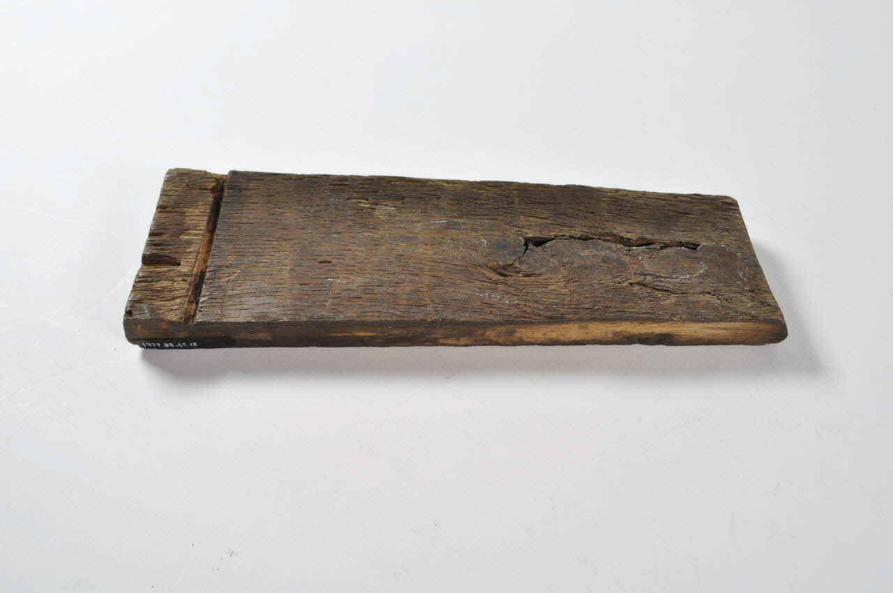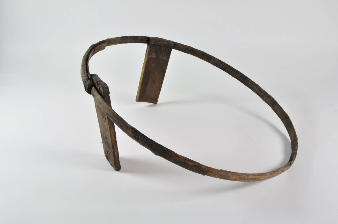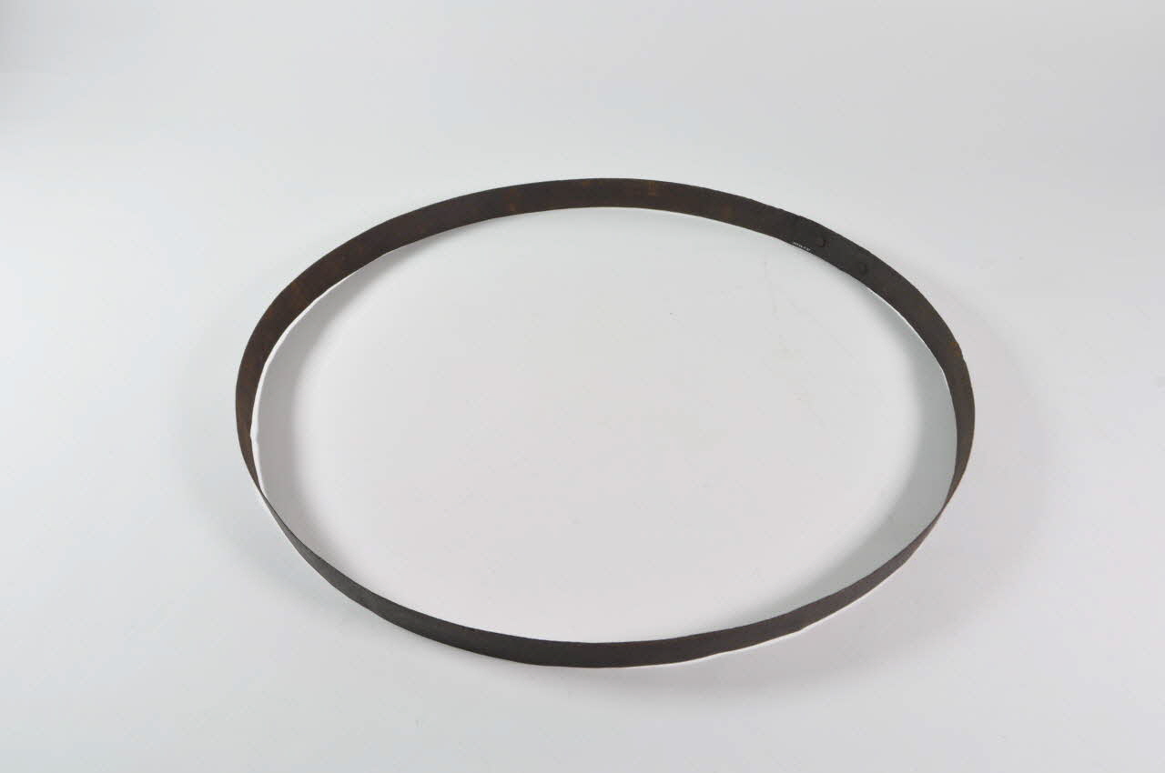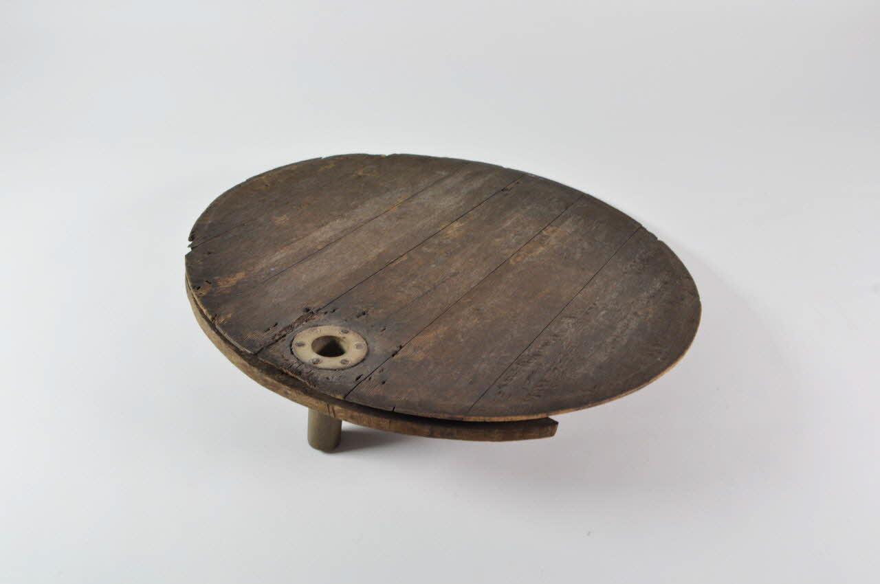Entonnoir désassemblé en forme de baquet circulaire. Il se compose d'un fond en bois avec tube, de vingt-six douelles rectangulaires en bois et de trois cercles de maintien en fer.Matériaux et techniques