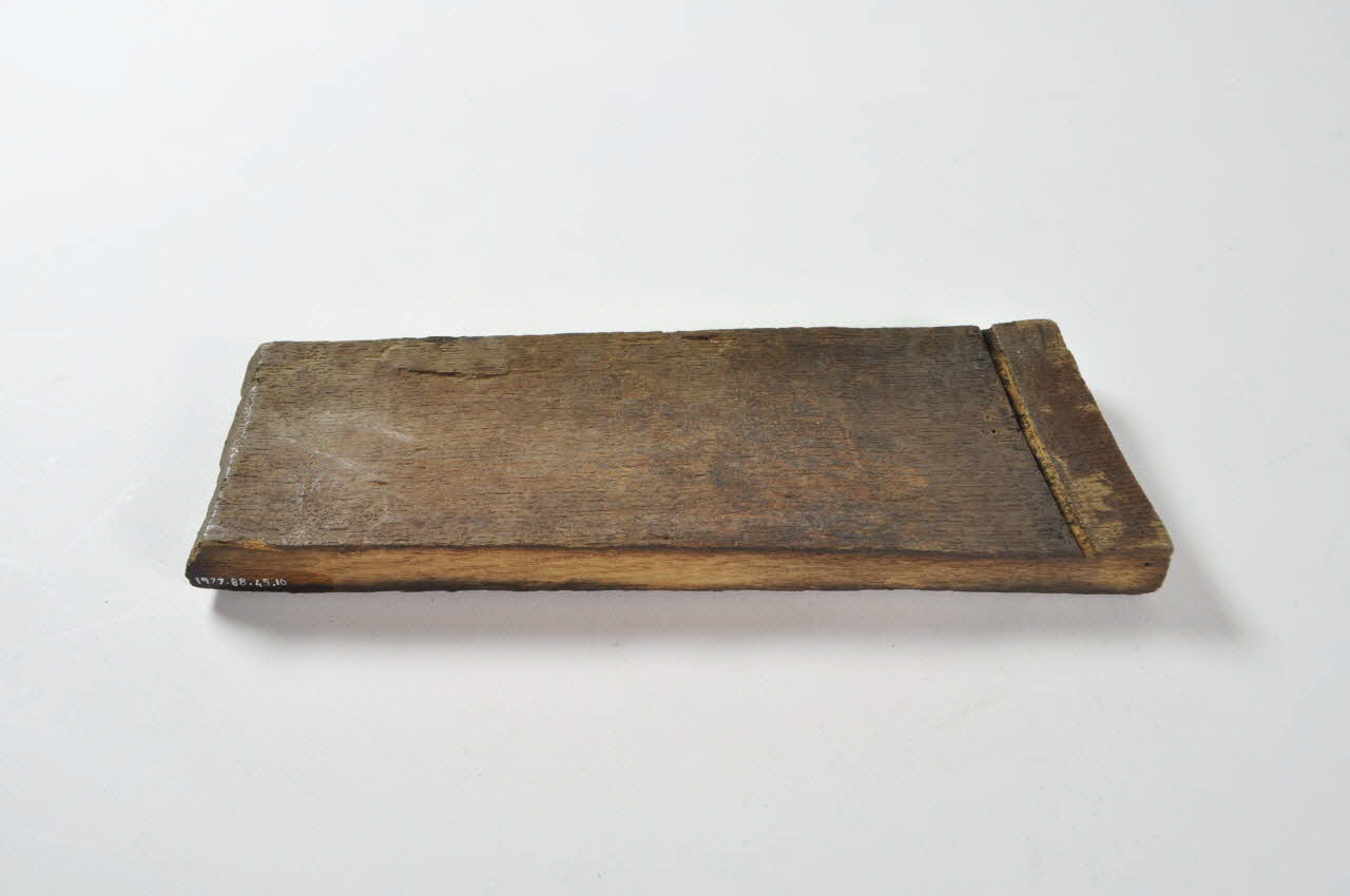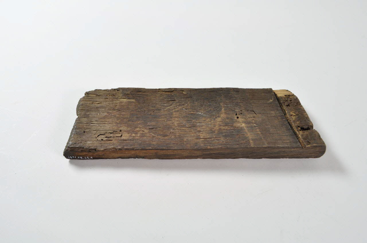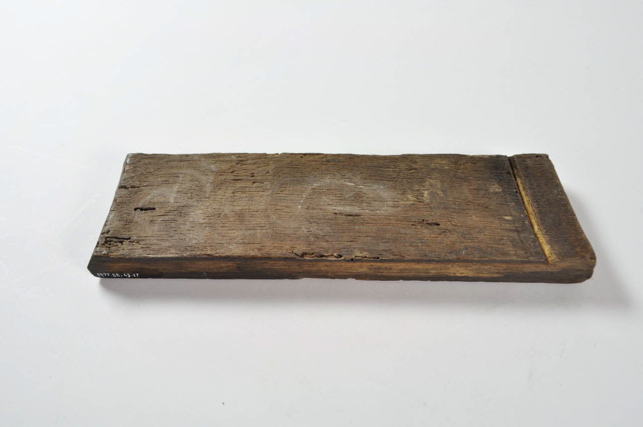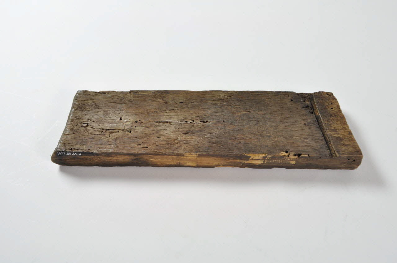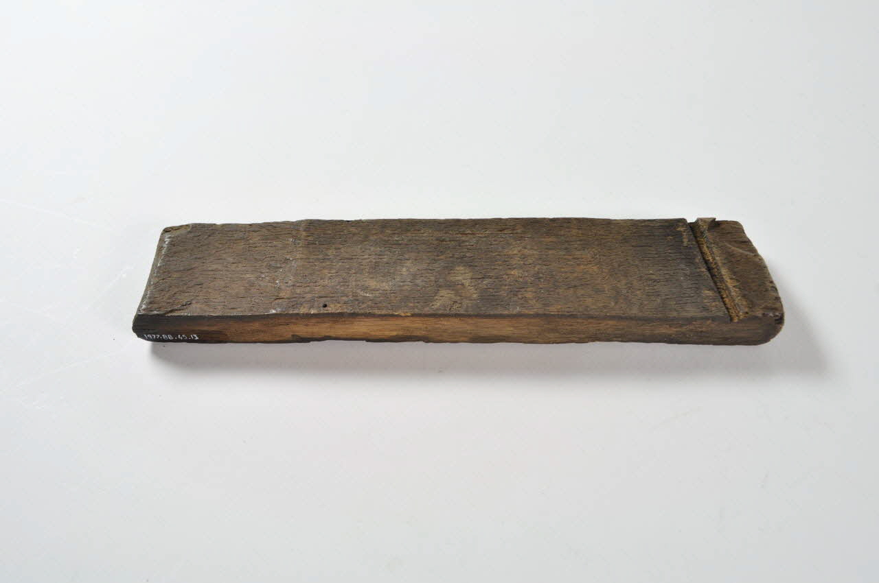 Entonnoir désassemblé en forme de baquet circulaire. Il se compose d'un fond en bois avec tube, de vingt-six douelles rectangulaires en bois et de trois cercles de maintien en fer.Matériaux et techniques