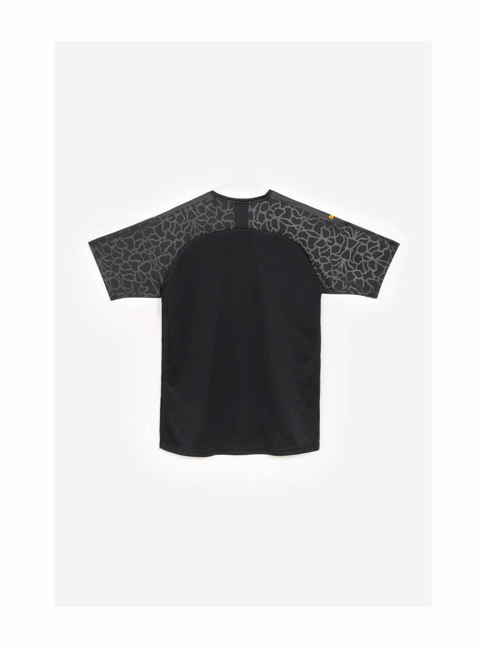 Lieu : Marseille, Bouches-du-Rhône, Provence-Alpes-Côte d'Azur, FranceDate : 2019Utilisateur : Olympique De MarseilleCette tunique reprend la résille imaginée par Rudy Ricciotti et Roland Carta sur un maillot noir qui sera le troisième du club pour la saison 2019/2020. D’un point de vue sportif, il permet d’offrir une solution dans le cas où une équipe adverse porte des couleurs similaires à celles de l’OM. Le maillot ici présent n’est pas exactement celui utilisé par les joueurs qui portent le modèle dit « Authentique » (plus cintré et confortable dans l’effort). On remarque aussi que ce maillot ne porte pas le sponsor officiel du club (Uber Eats). Commercialement, il permet surtout aux équipementiers de s’offrir plus de souplesse avec les couleurs historiques des clubs car il ne reprend pas la couleur "olympienne". Le 3e maillot est l'occasion d'innover et de plonger encore un peu plus dans culture du club et de sa ville. Le 3e maillot 2020/2021 rend par exemple hommage au hip-hop marseillais. C’est souvent l’un des maillots les mieux vendus. Les couleurs et la dentelle du 3e maillot 2019/2020 ont également été reprises sur une écharpe. Pour le musée, il est aussi la traduction de son activité de quête de mécénat pour obtenir des subventions propres. Puma est devenu mécène du Mucem en 2019 pour une durée de deux ans. La marque allemande profite de différents avantages, comme l’organisation de soirée. Elle est également associée à l’évènement plan B, un festival qui se déroule du 1er au 17 août. Ce maillot témoigne également de questions juridiques relatives aux droits de l'architecture. Riccioti, dans le cadre du Mucem, ne conserve que son droit moral qui lui permet de refuser toute action qui dénaturerait son œuvre, mais il cède ses droits d'auteur au maître d'ouvrage.