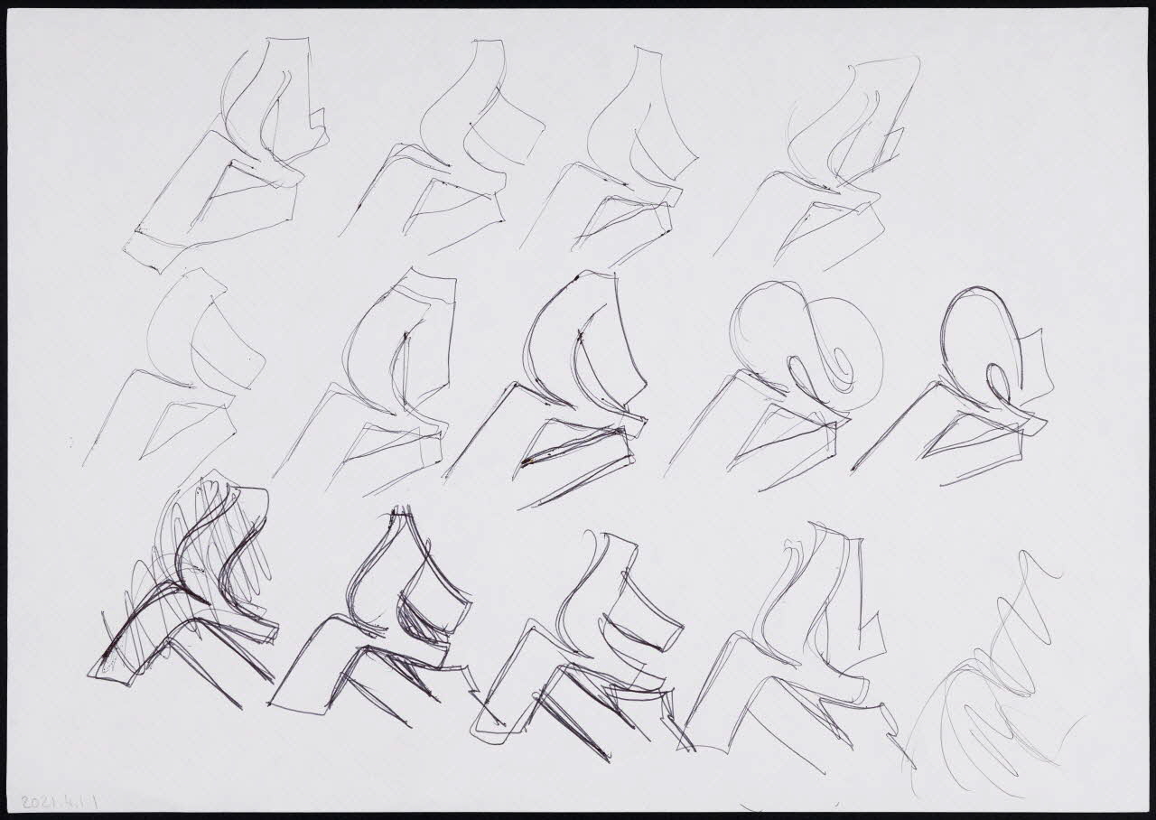Lieu : Milan, Lombardie, ItalieDate : 2005Recherche stylistique sur la base de la lettre E pour créer un répertoire de formes. Plusieurs variations peuvent suivre (ajout de flèches…). Neuro a fait le même exercice avec toutes les lettres de l'alphabet.