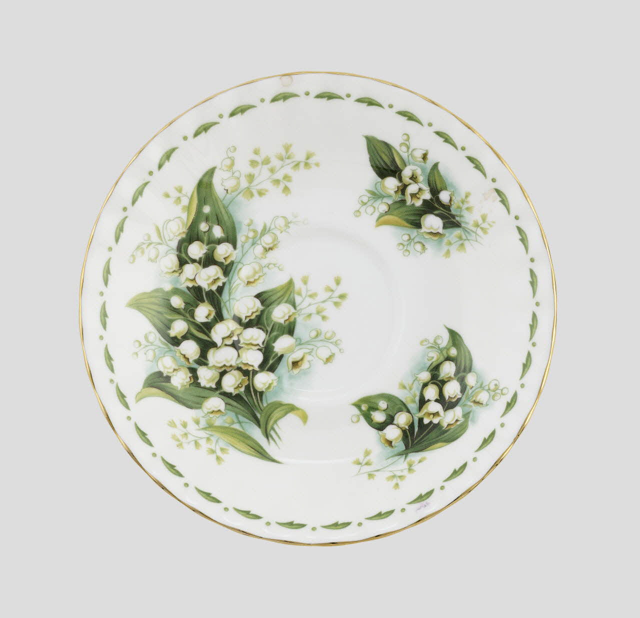 Royal Albert/Bone China England/ Flower of the month series/Lily of the valley/ c Royal Albert LTD 1970 (Sous la tasse et la soucoupe.), au dessousDécor