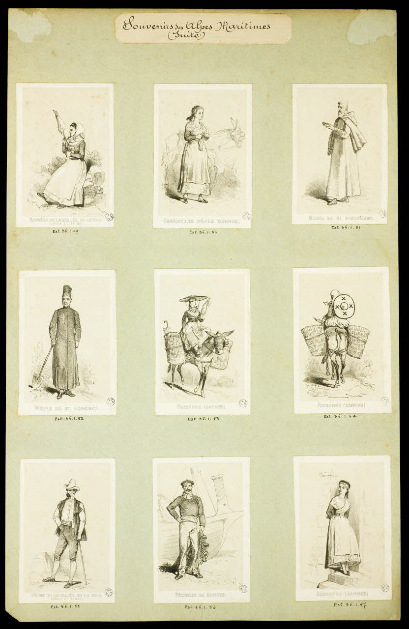 - Figure : bergère, en pied, filage, vêtement : Alpes-Maritimes D, Tende
