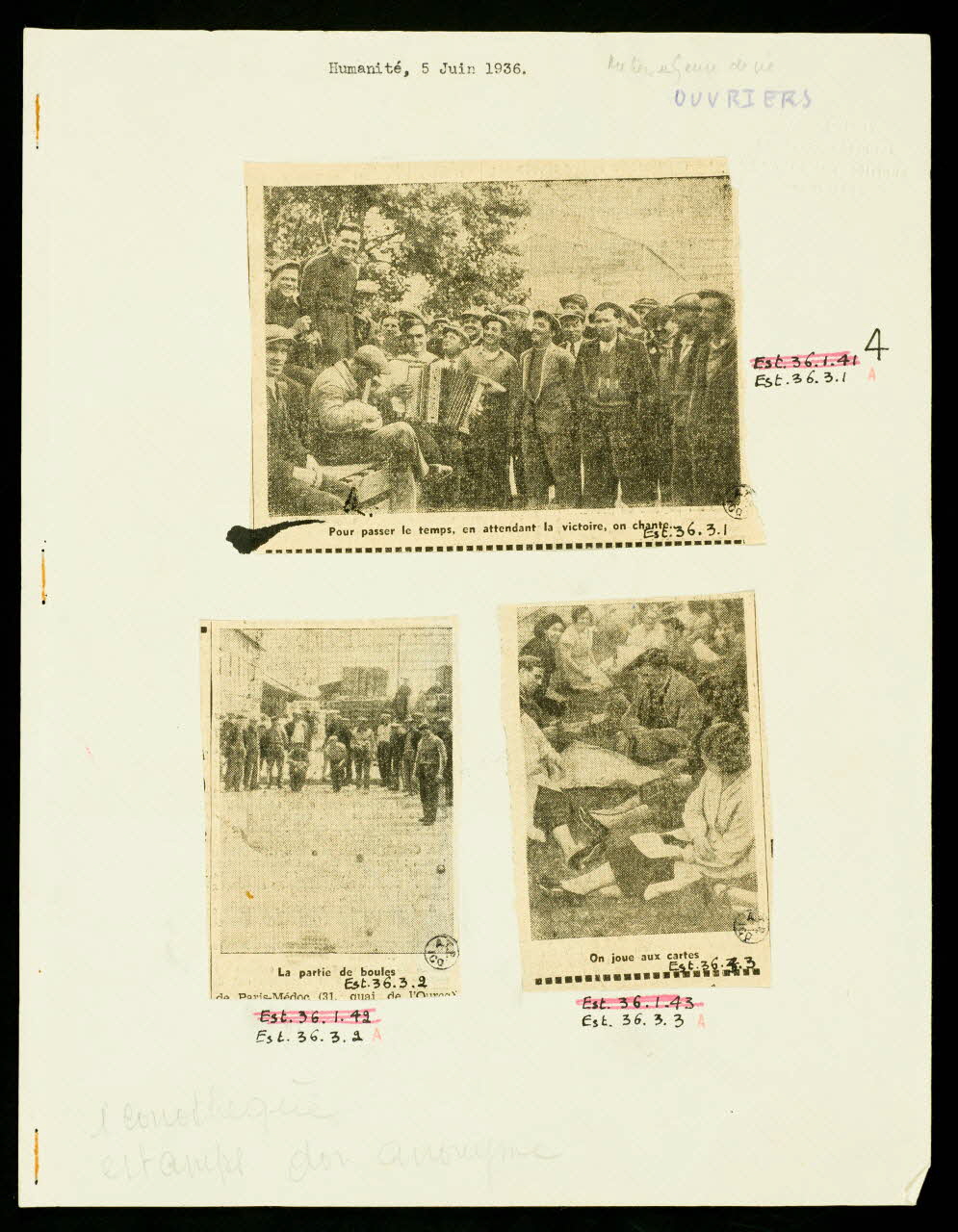 - Scène : ouvrier, Front populaire, grève, jeu de boules, Paris