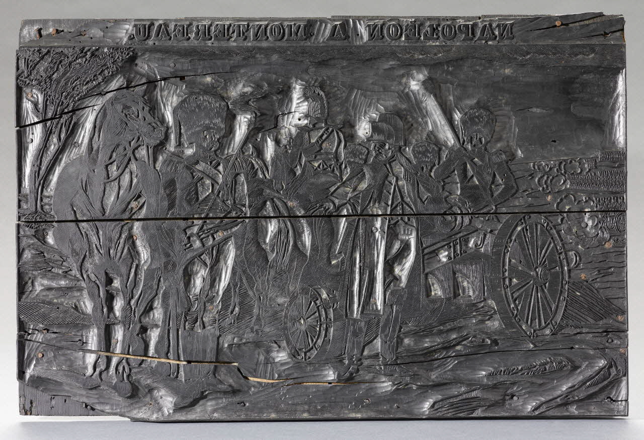 (Fabrique de PELLERIN, Imprimeur-Libraire, à EPINAL. (b. d.))(Le 28 février 1814, informé que les troupes du prince Adam de Wurtemberg (...) le boulot qui me tuera n'est pas encore fondu! (b.))Décor