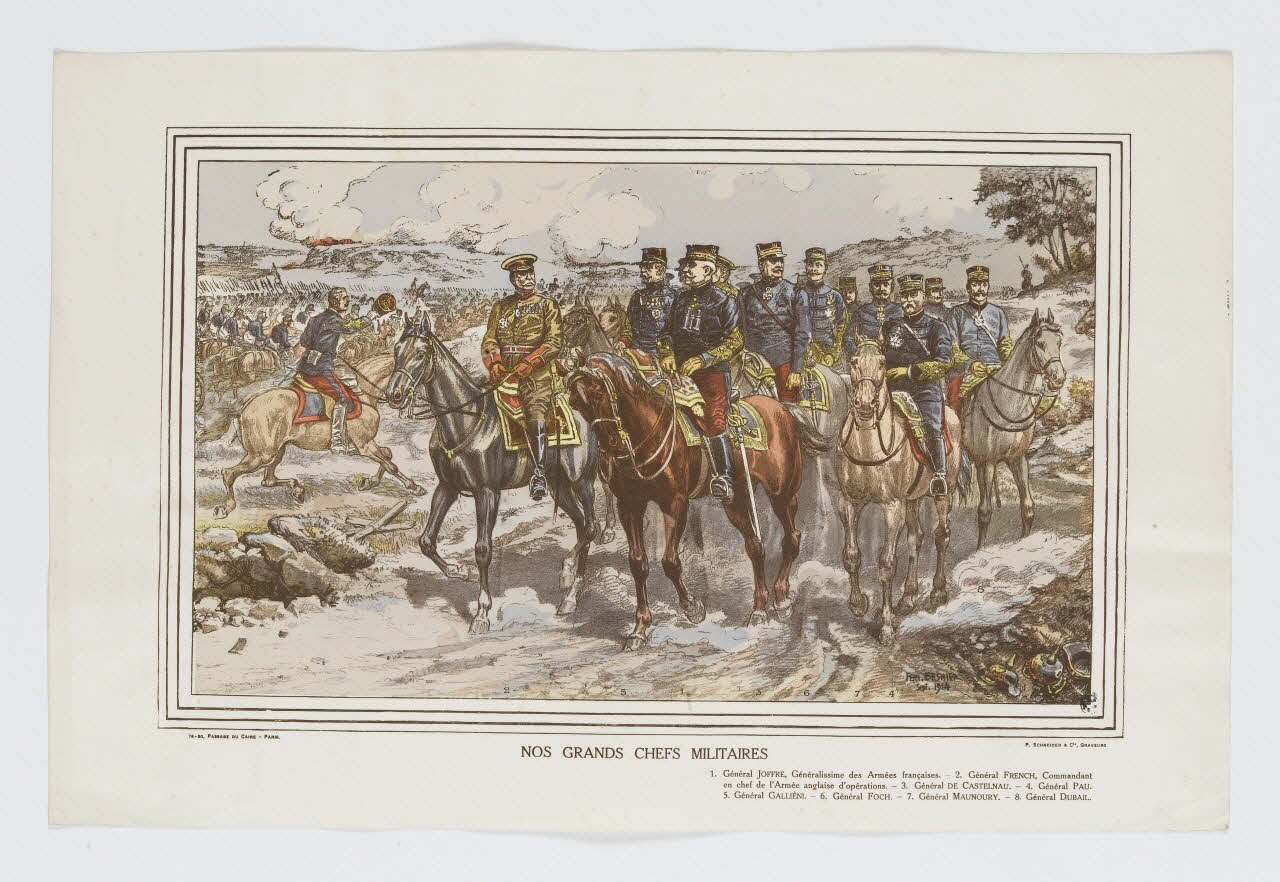 - Portrait collectif : Joffre Joseph, Castelnau, Pau : général, Galliéni Joseph, Foch Ferdinand, équestre