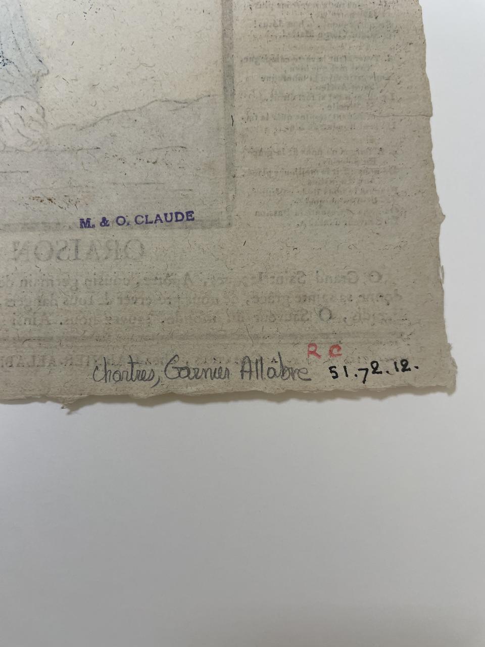 (A CHARTRES, CHEZ GARNIER)(ALLABRE, FABRICANT D'IMAGES, LIBRAIRE ET PAPETIER, PLACE DES HALLES, NO. 17. EVREUX, DE L'IMP. D'ANCELLE FILS.)Décor