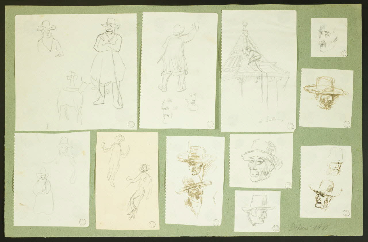 (ATELIER GAETAN DUMAS (cachet circulaire) / Salers 1911 (L. D. b. d., mine de plomb, face montage))(769 (mine de plomb, revers montage))Décor