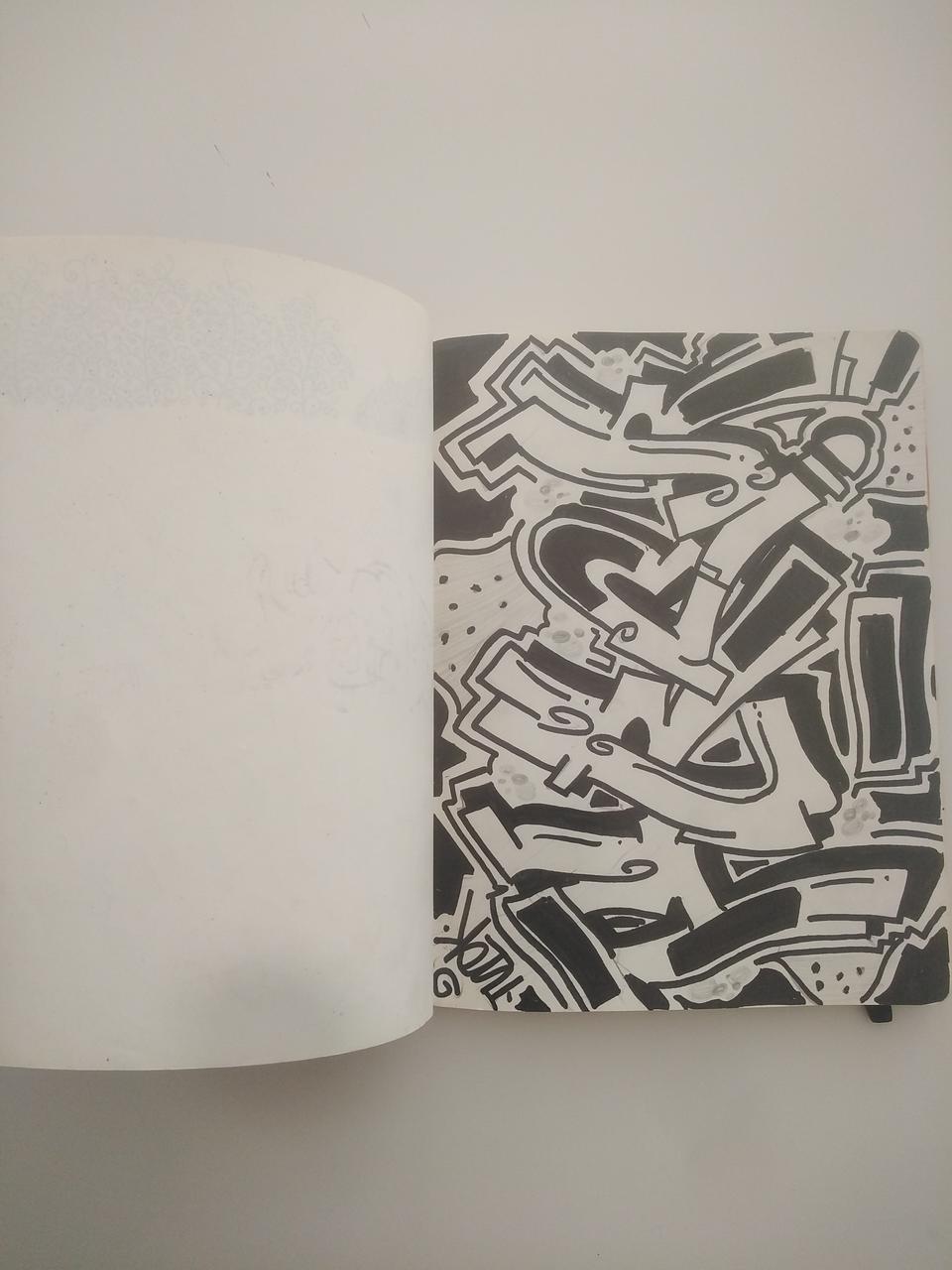 A l'intérieur, notes et croquis relevant du graffiti, du street art, mais aussi de projets plus vastes ("Green city project"). On note l'apparition du chat caractéristique du street art de Lunar.Décor