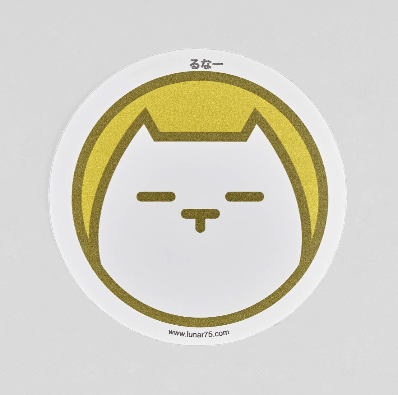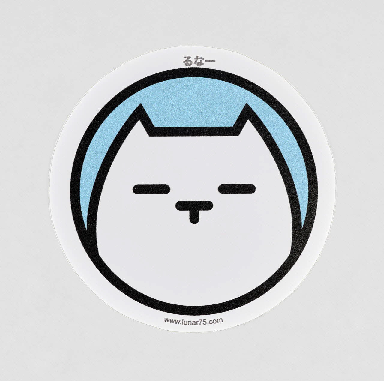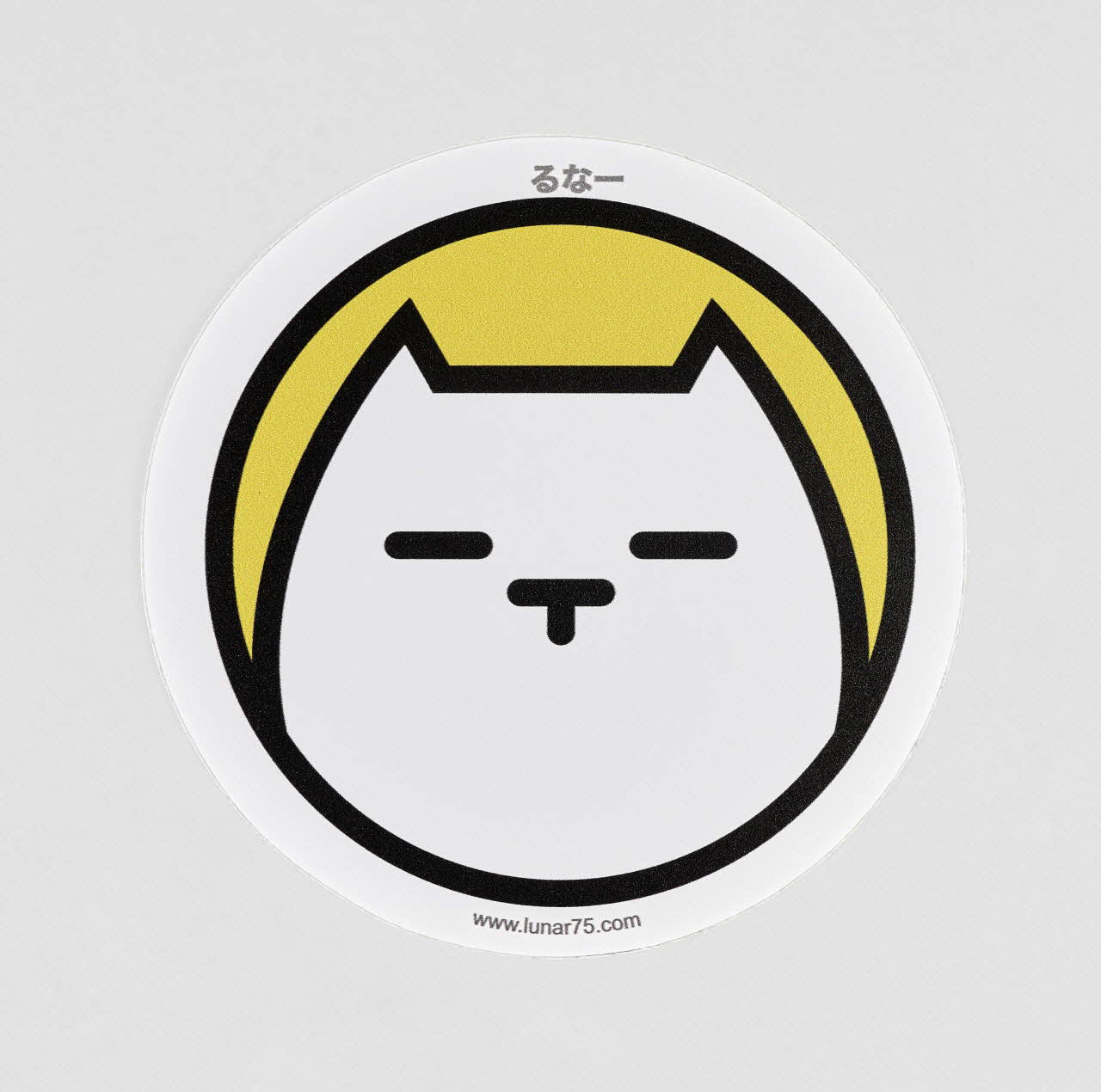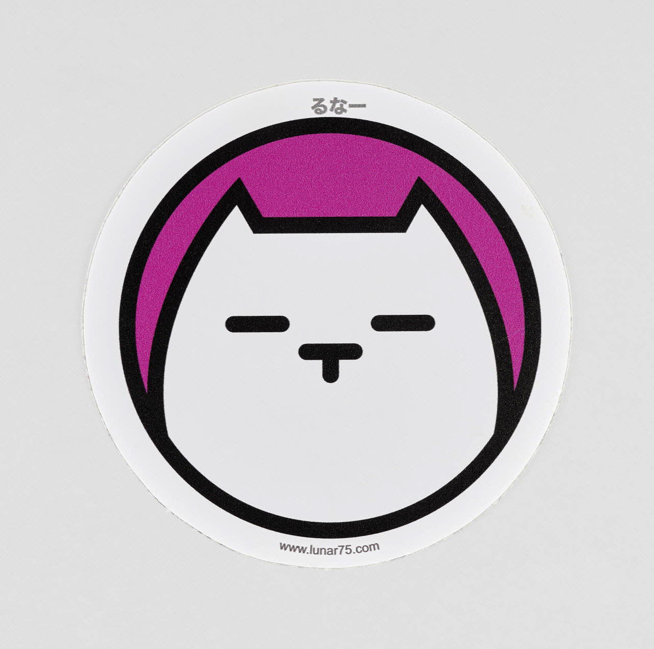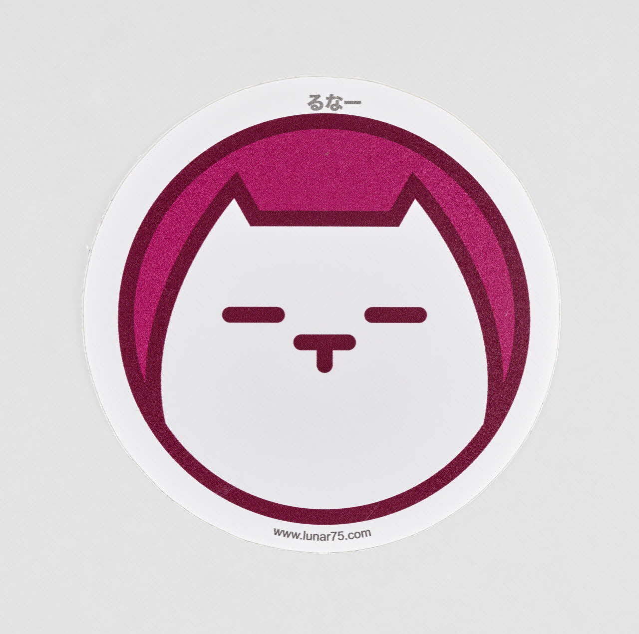 La stylisation de l'animal évoque l'esthétique du manga, tout comme la transcription du nom de l'artiste en japonais, au-dessus de la figure ("Runa"). Seuls varient, d'un autocollant à l'autre, les couleurs (toujours vives) du fond et des contours. La mention du site internet de l'artiste explicite la vocation promotionnelle du sticker.Décor