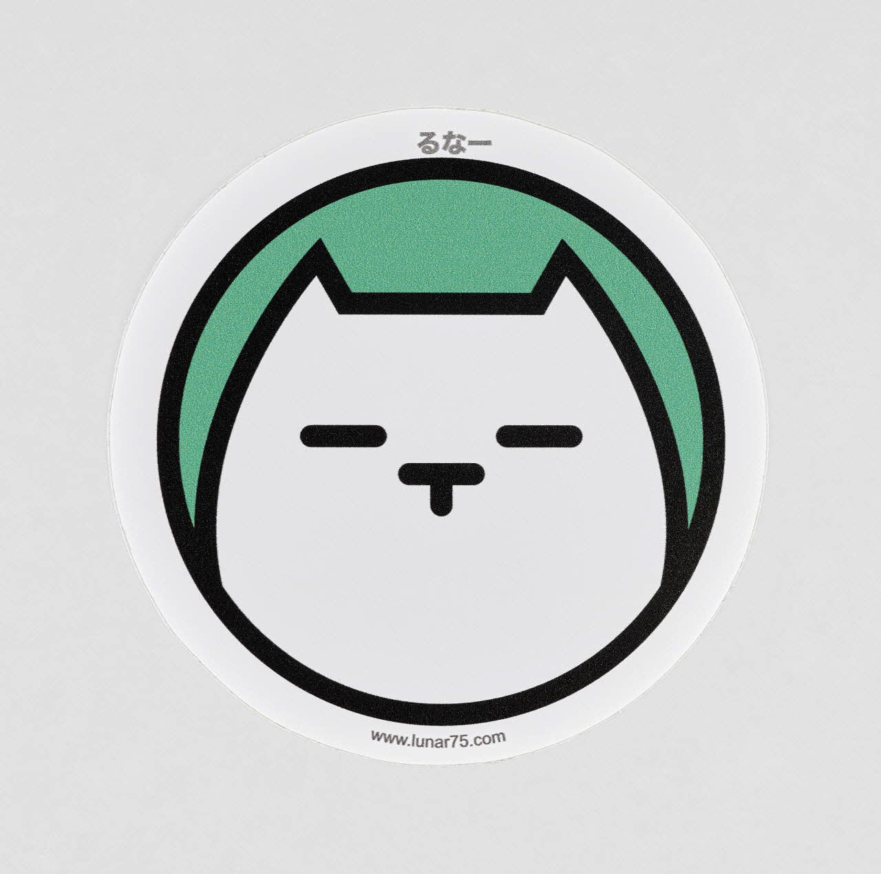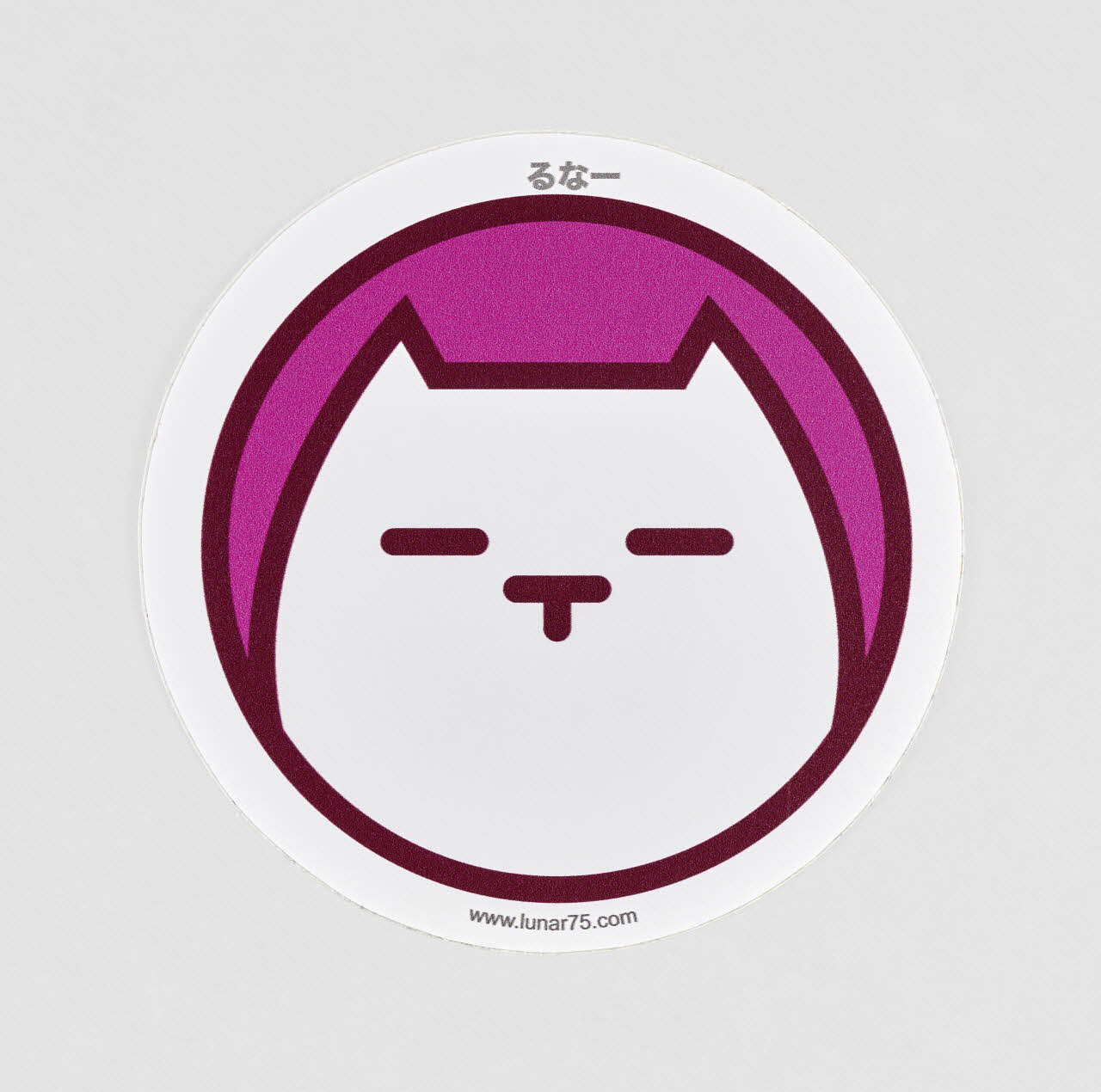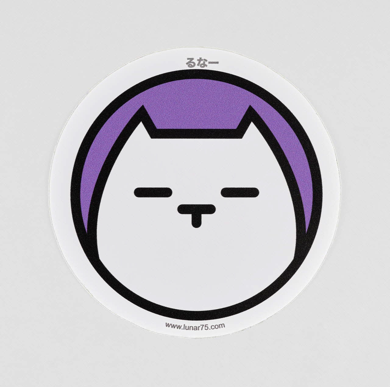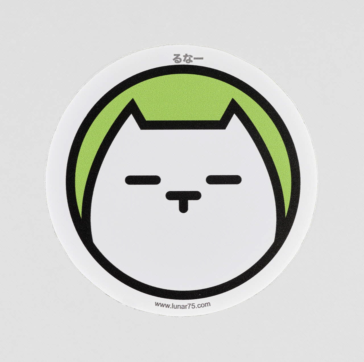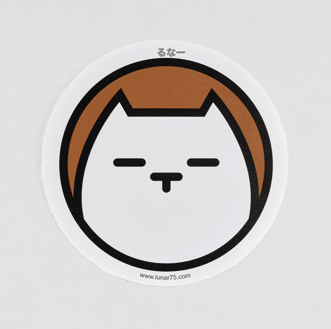 La stylisation de l'animal évoque l'esthétique du manga, tout comme la transcription du nom de l'artiste en japonais, au-dessus de la figure ("Runa"). Seuls varient, d'un autocollant à l'autre, les couleurs (toujours vives) du fond et des contours. La mention du site internet de l'artiste explicite la vocation promotionnelle du sticker.Décor
