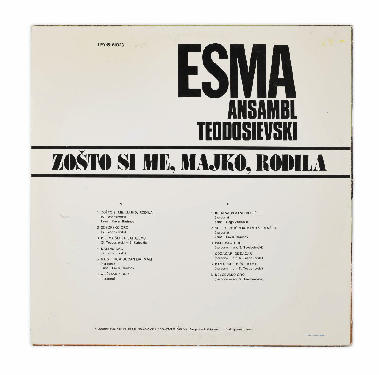 disque 33 tours, pochette de disque, Zosto si me, majko, rodila, Pourquoi tu m'as donné la vie, mère