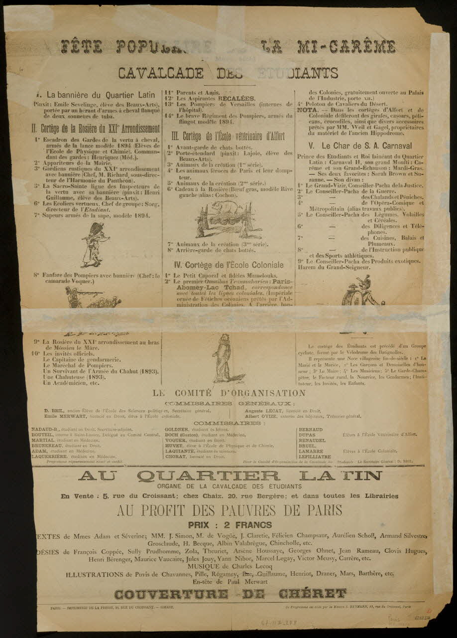 estampe, PROGRAMME DE LA CAVALCADE DES ETUDIANTS