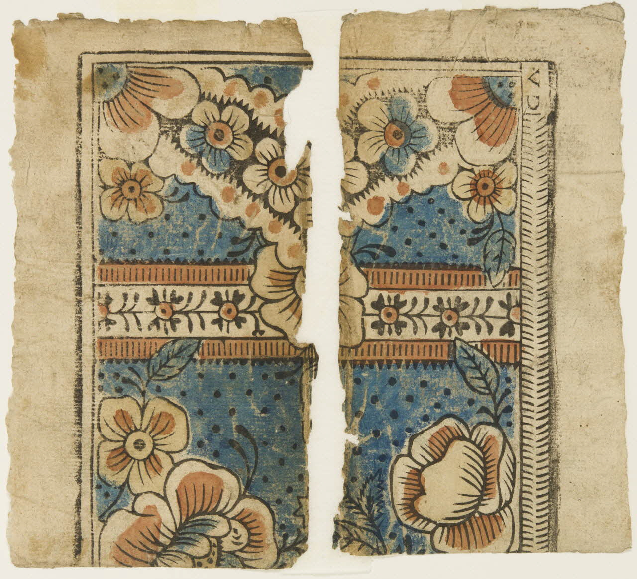- papier vergé : bois de fil (colorié au pochoir)