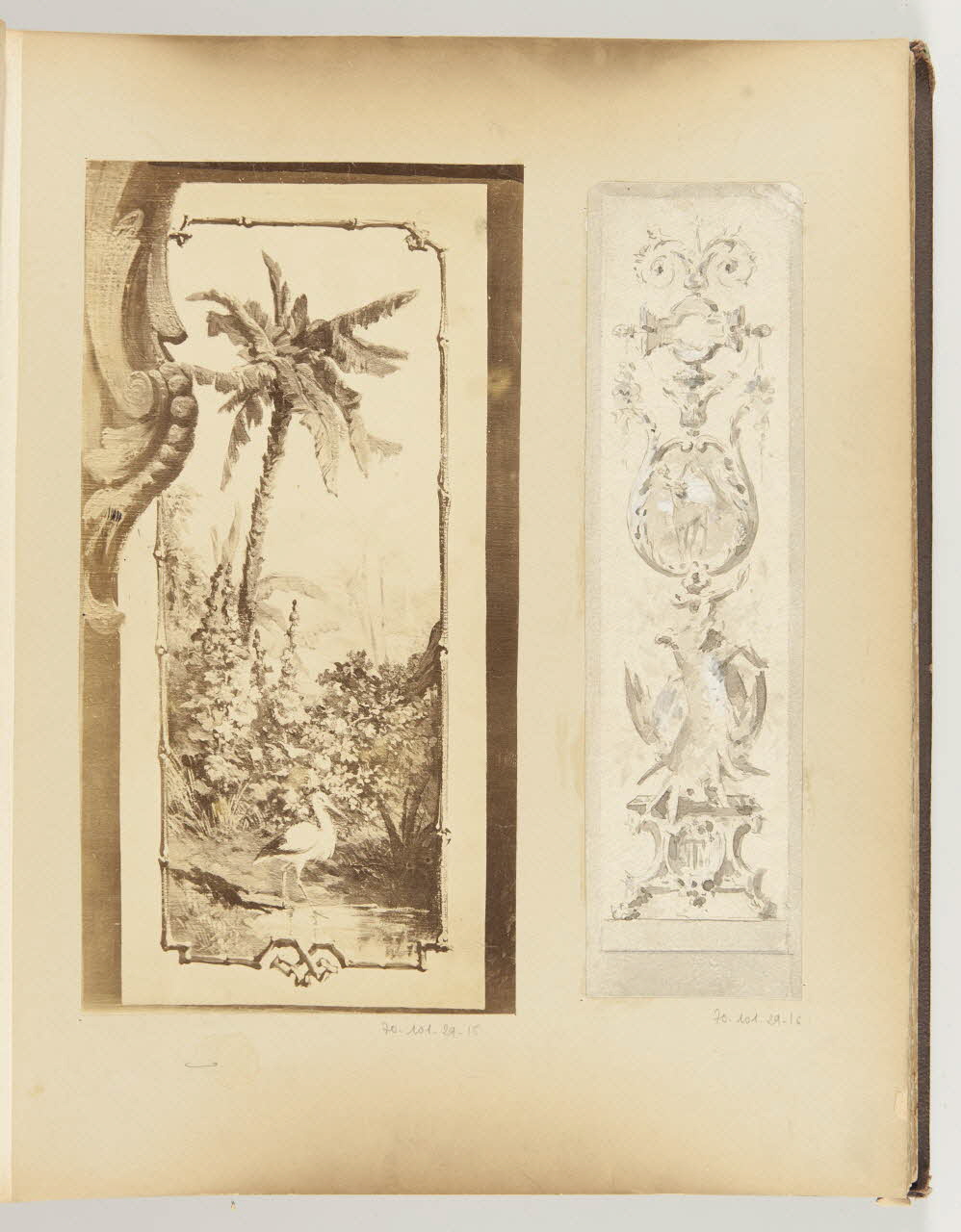 album, partie d'un ensemble de dessins et de photographies, Projet d'un panneau décoratif pour une charcuterie : trophée de chasse