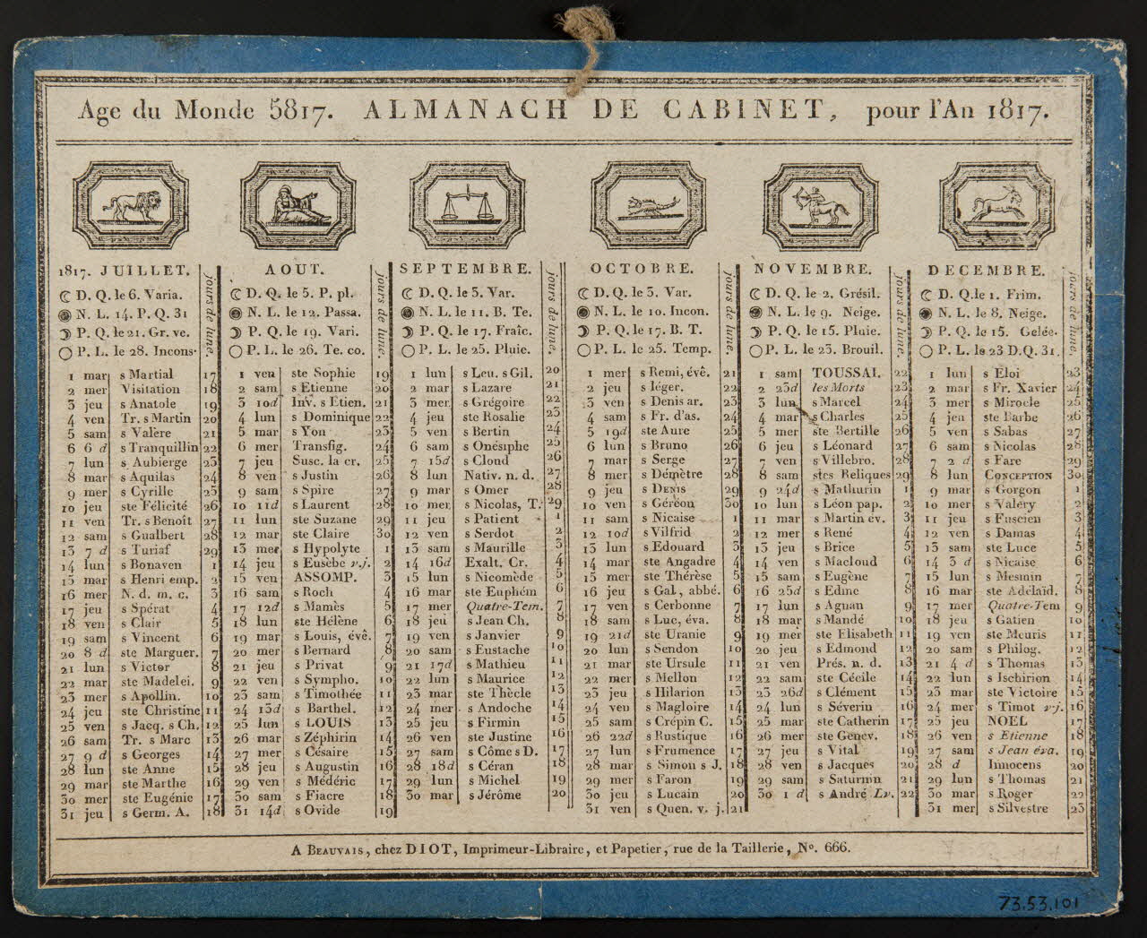 imagerie ancienne, calendrier, Age du Monde 5817. ALMANACH DE CABINET, pour l'An 1817.