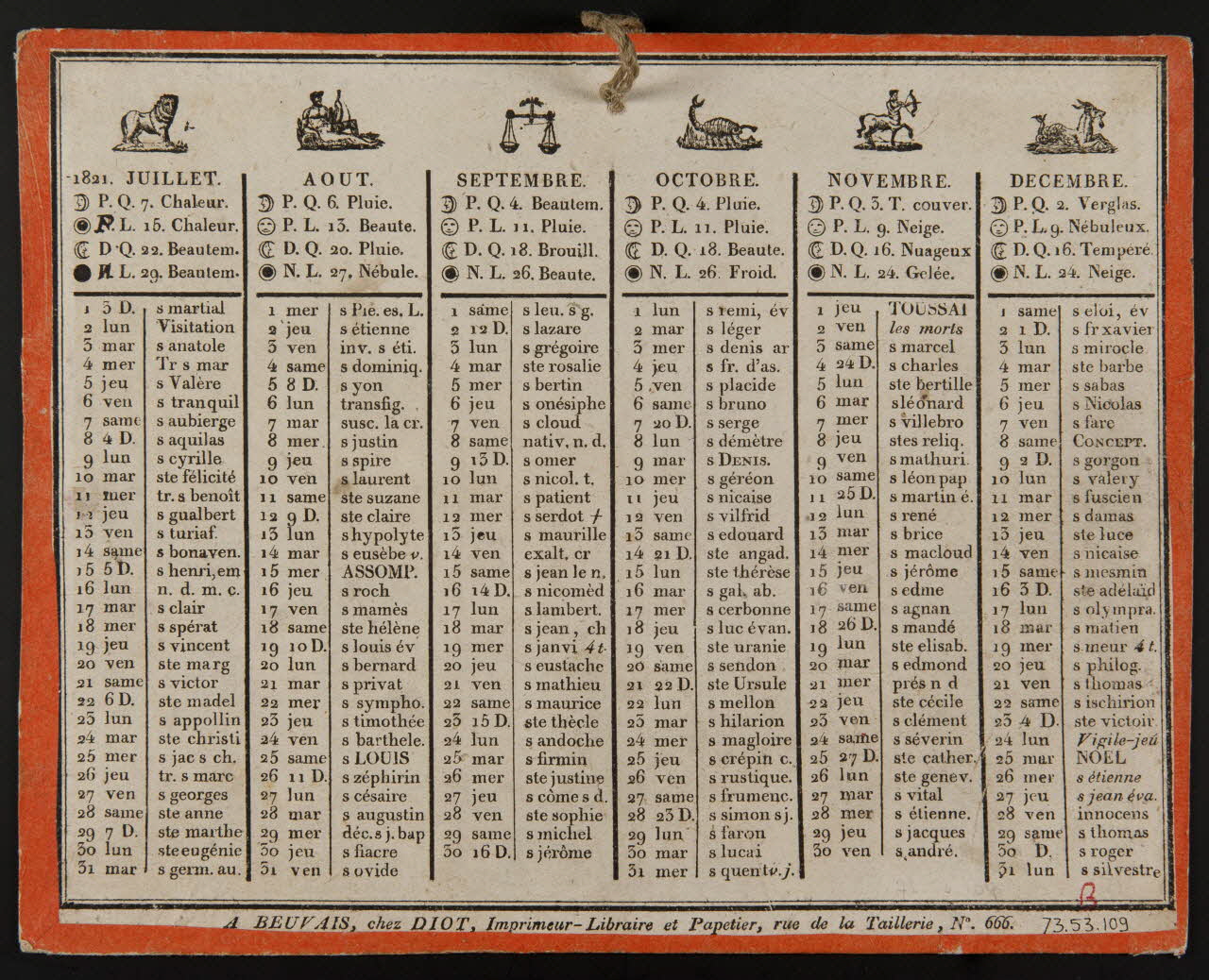imagerie ancienne, calendrier, Calendrier de 1821