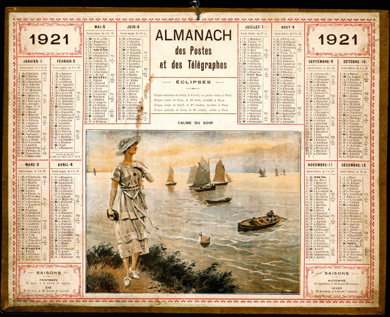 calendrier, ALMANACH des Postes et des Télégraphes 1921