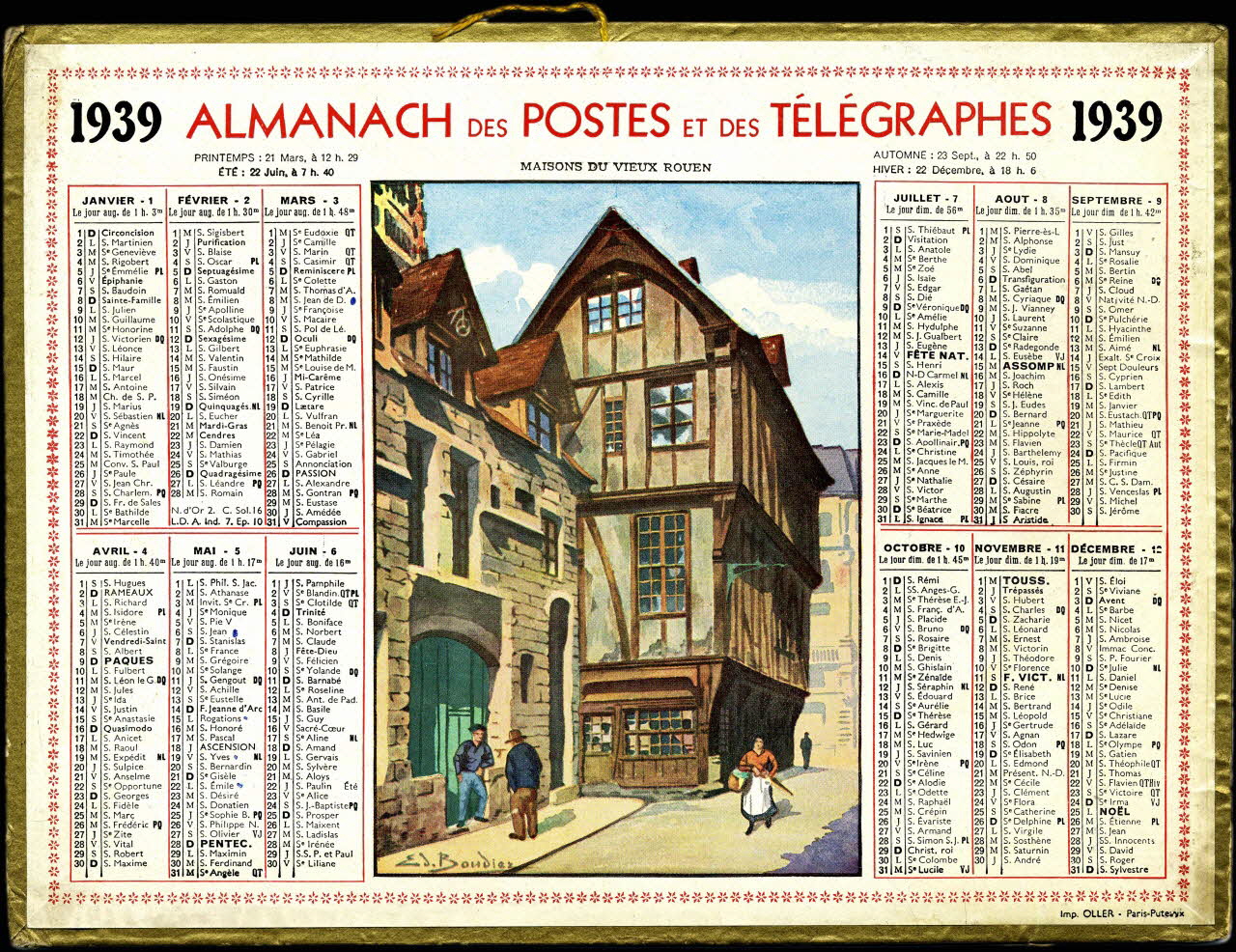 calendrier, ALMANACH DES POSTES ET DES TELEGRAPHES 1939