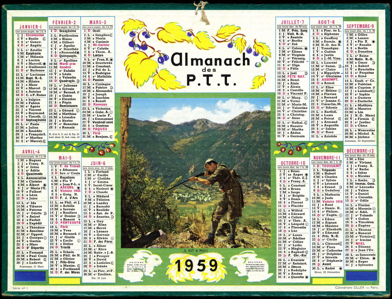 calendrier, Almanach des P. T. T. 1959