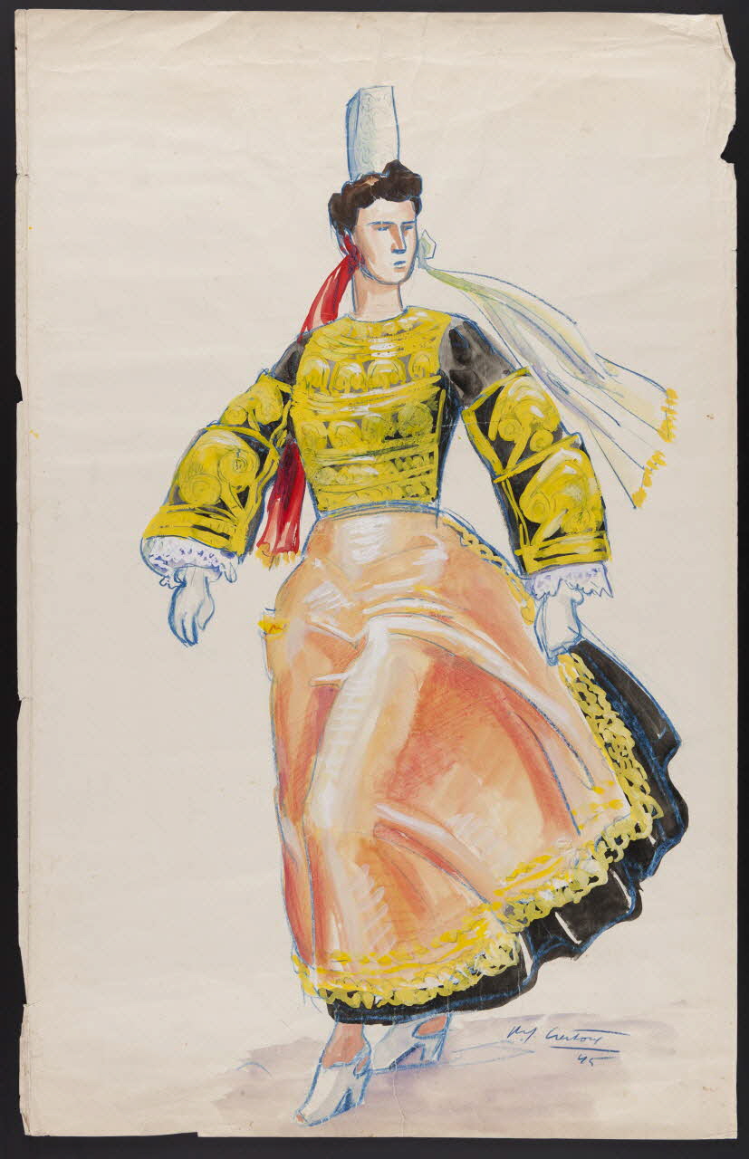 - Figure : femme, en pied, costume traditionnel : Finistère D, coiffe, effet de mouvement : la marche