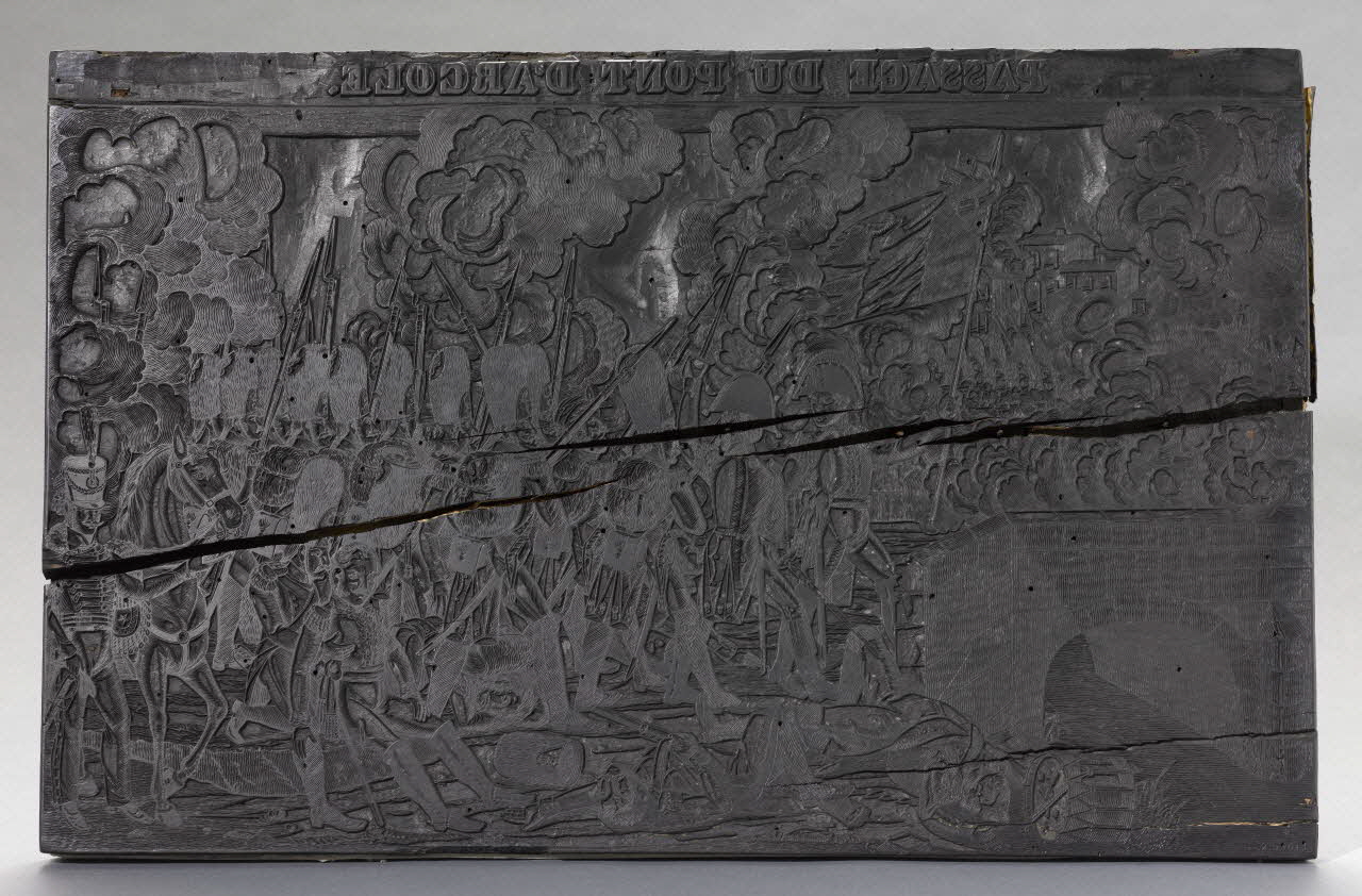 Bois d'impression pour l'estampe PASSAGE DU PONT D'ARCOLE par Georgin, 1833Décor