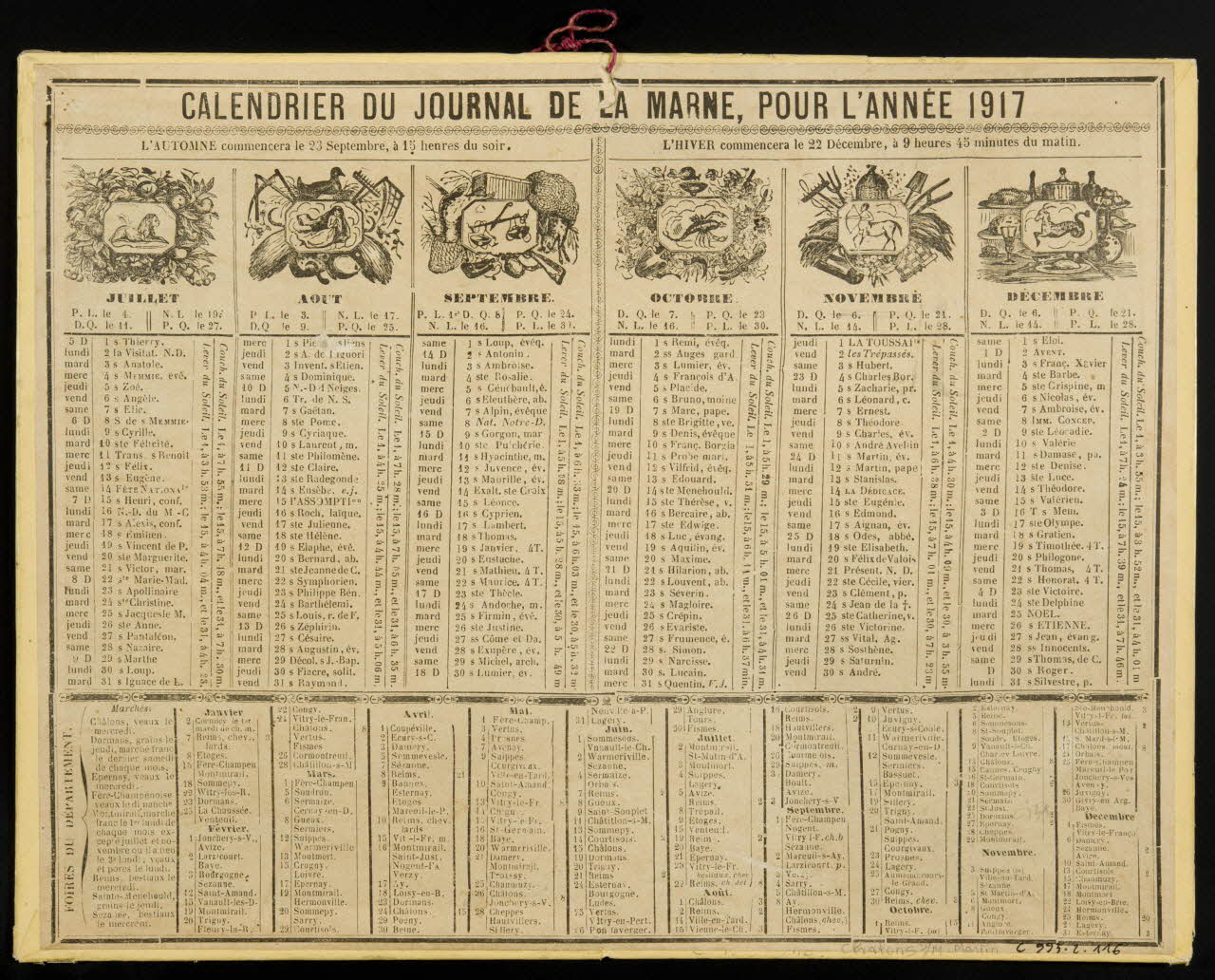 calendrier, CALENDRIER DU JOURNAL DE LA MARNE, POUR L'ANNEE 1917