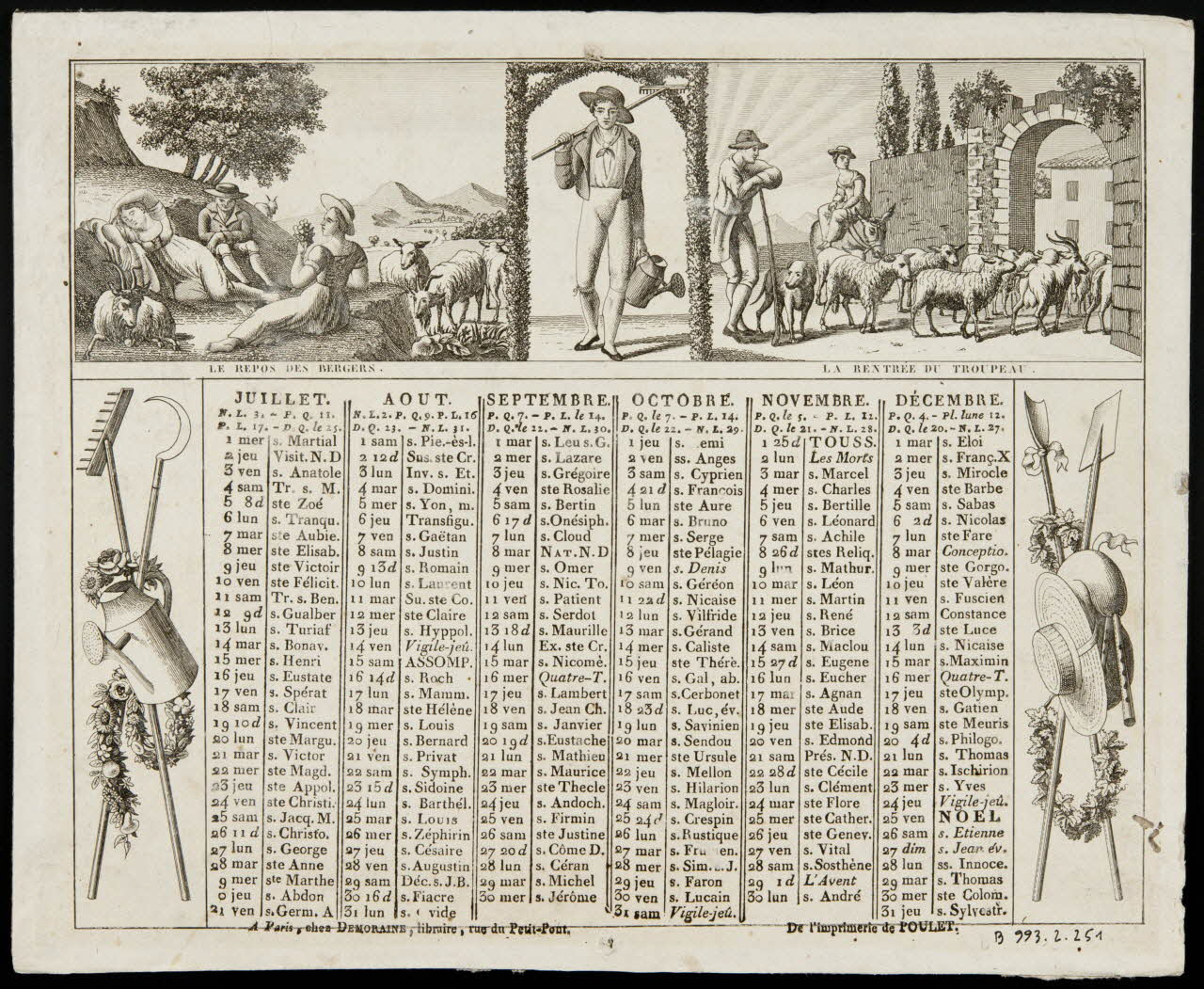 (L'ABREUVOIR (h. d.))(LE REPOS DES BERGERS (revers, h. g.))(LA RENTREE DU TROUPEAU (revers, h. d.))(A Paris, chez DEMORAINE, libraire, rue du Petit-Pont (b. g.))(De l'imprimerie de POULET (revers, b. d.))Décor