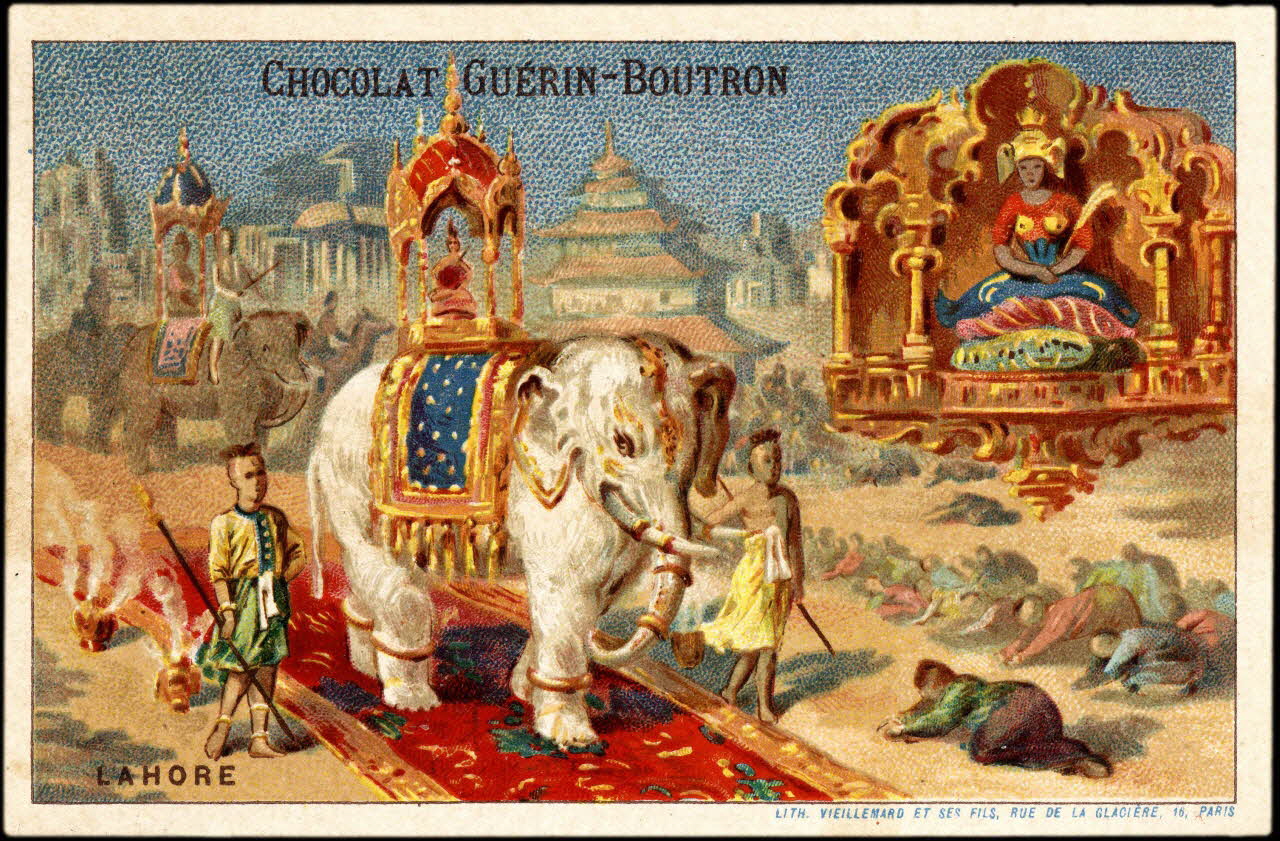 - Scène : cortège : religieux, éléphant, portant : statue : religieuse, Lahore, dévotion, prière