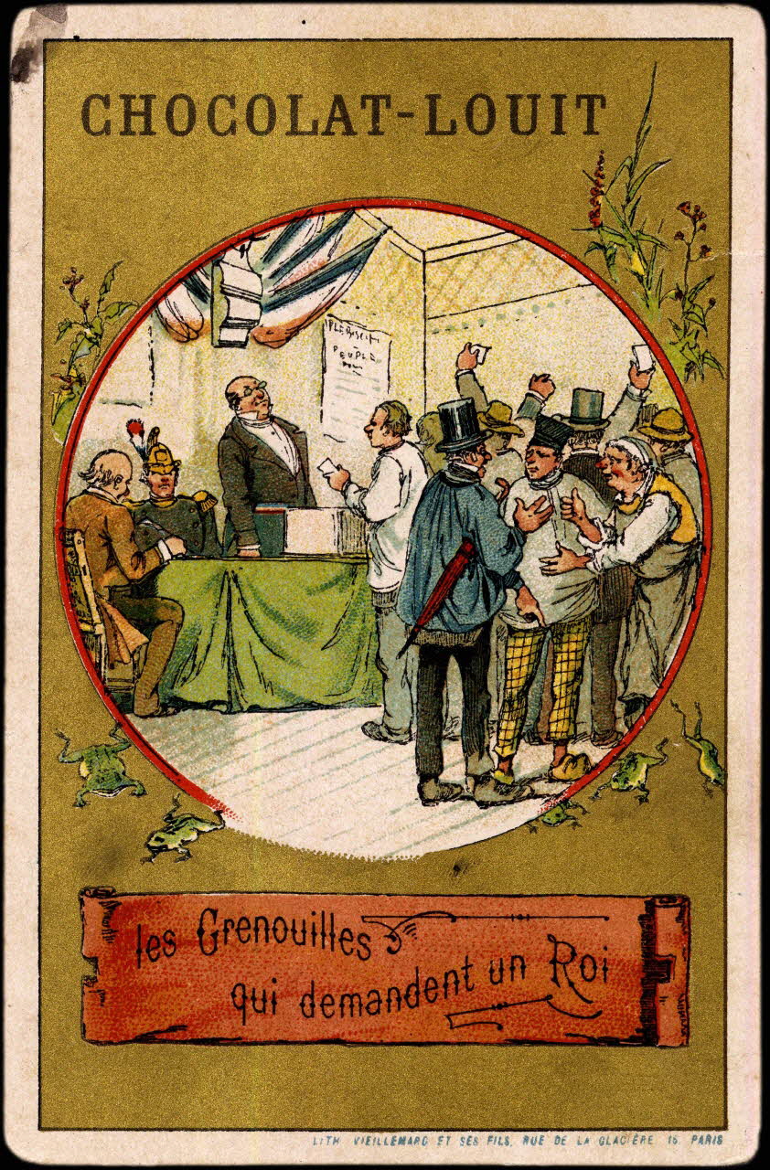 carte réclame, chromo, les Grenouilles qui demandent un Roi