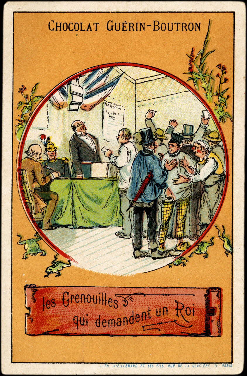 carte réclame, chromo, les Grenouilles qui demandent un Roi