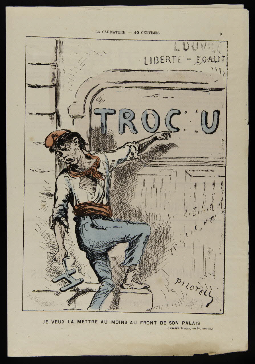Un révolutionnalire vient d'enlever avec colère la lettre H du mot "Trochu" qui figure au-dessus d'une porte d'entrée.Inscriptions