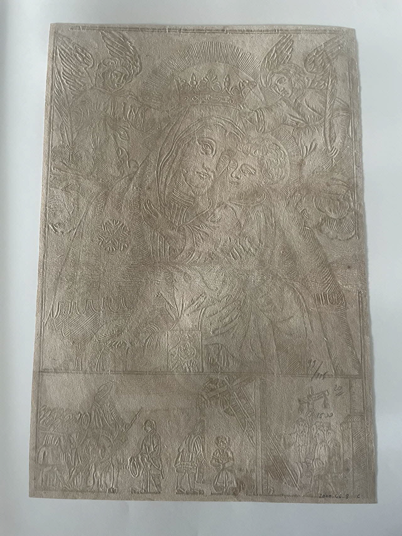 - Figure biblique : Vierge à l'Enfant, en buste, scapulaire, couronne, ange