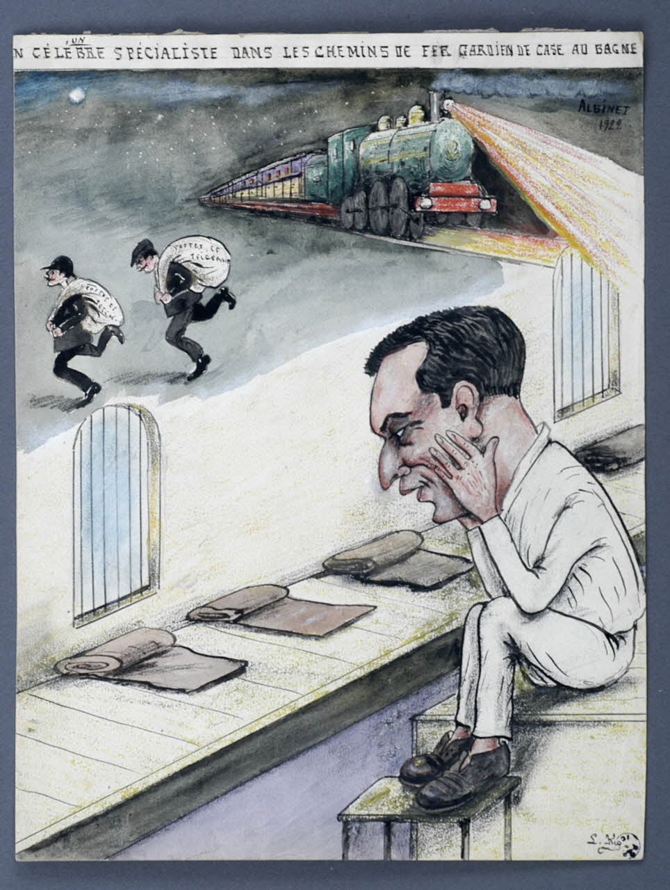 dessin, UN CELEBRE SPECIALISTE DANS LES CHEMINS DE FER GARDIEN DE CASE AU BAGNE ALBINET