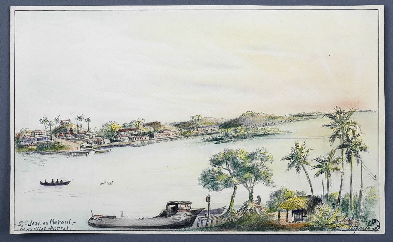 dessin, ST-Jean au Maroni. - vu de l'ILOT Portal.